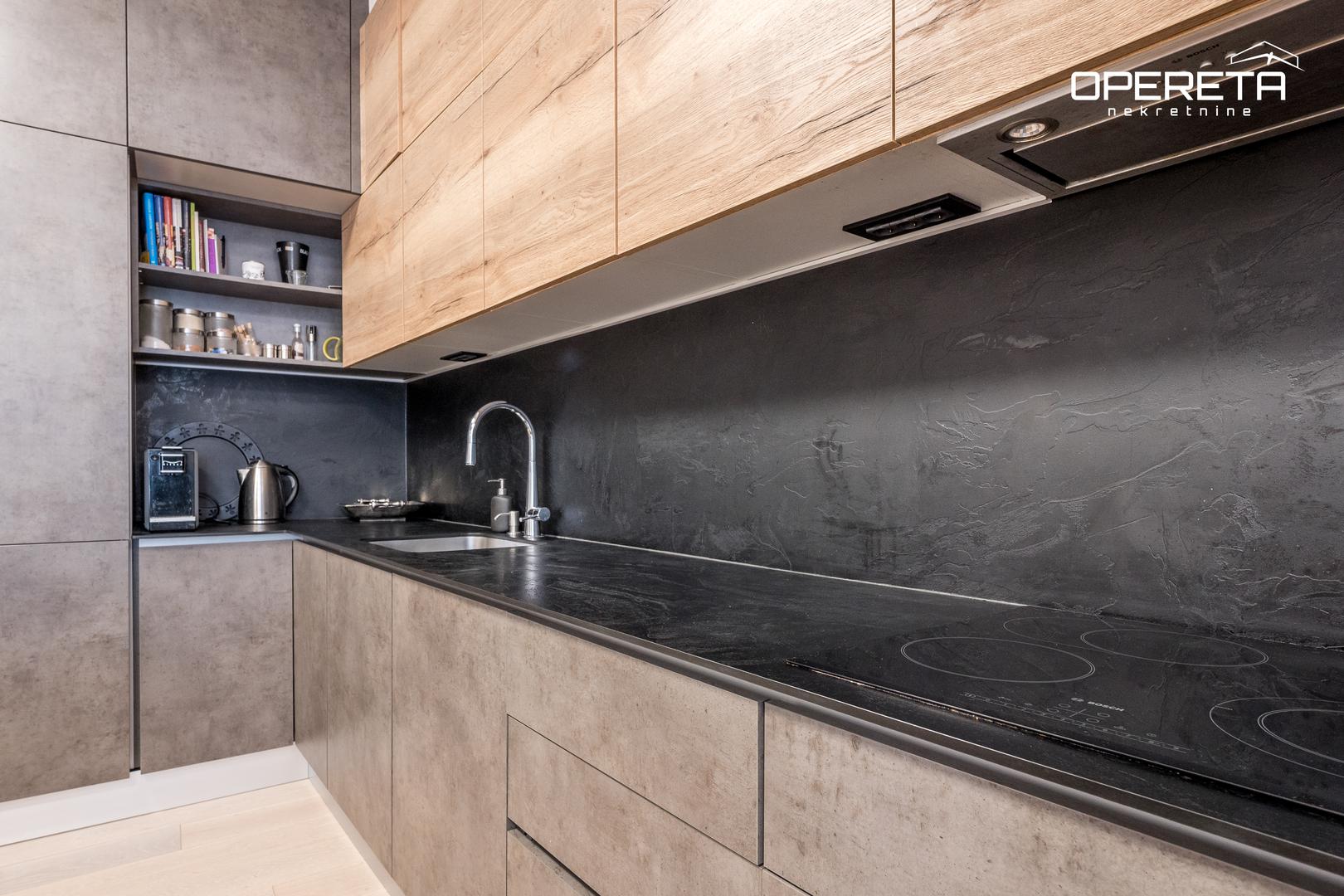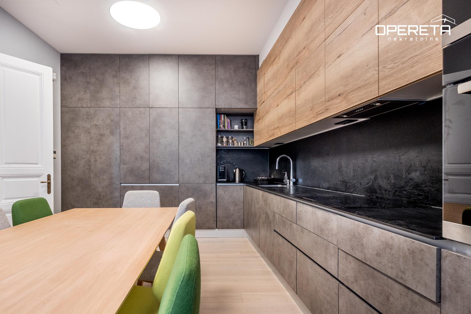 Odvojena kuhinja izrađena je po mjeri, vrhunske kvalitete, s obiljem elemenata i jasno vidljivim visokim ulaganjima u svaki segment.