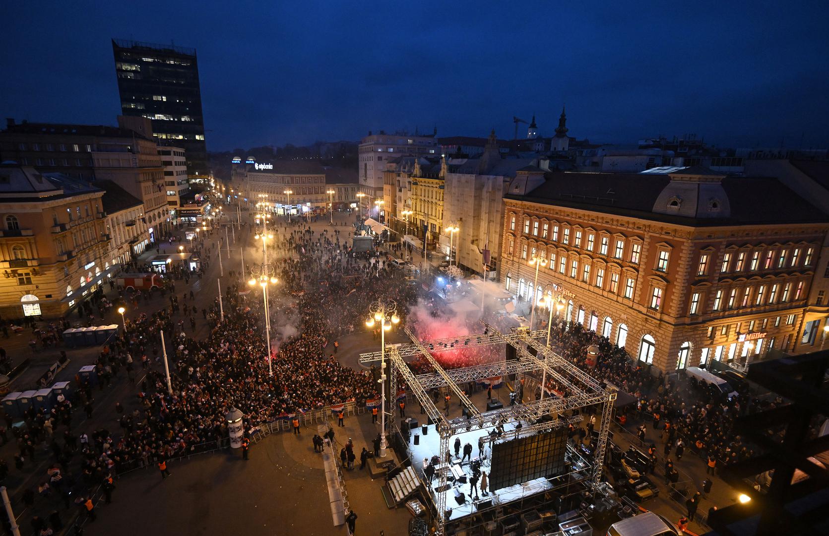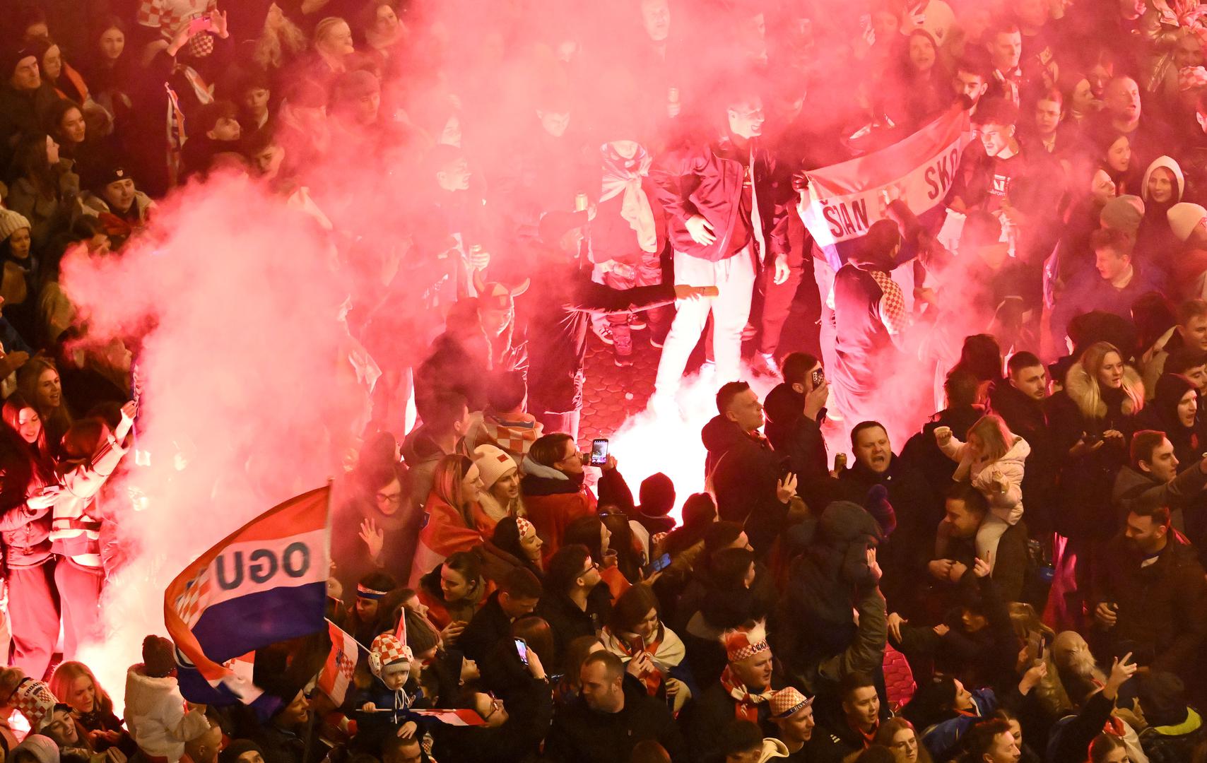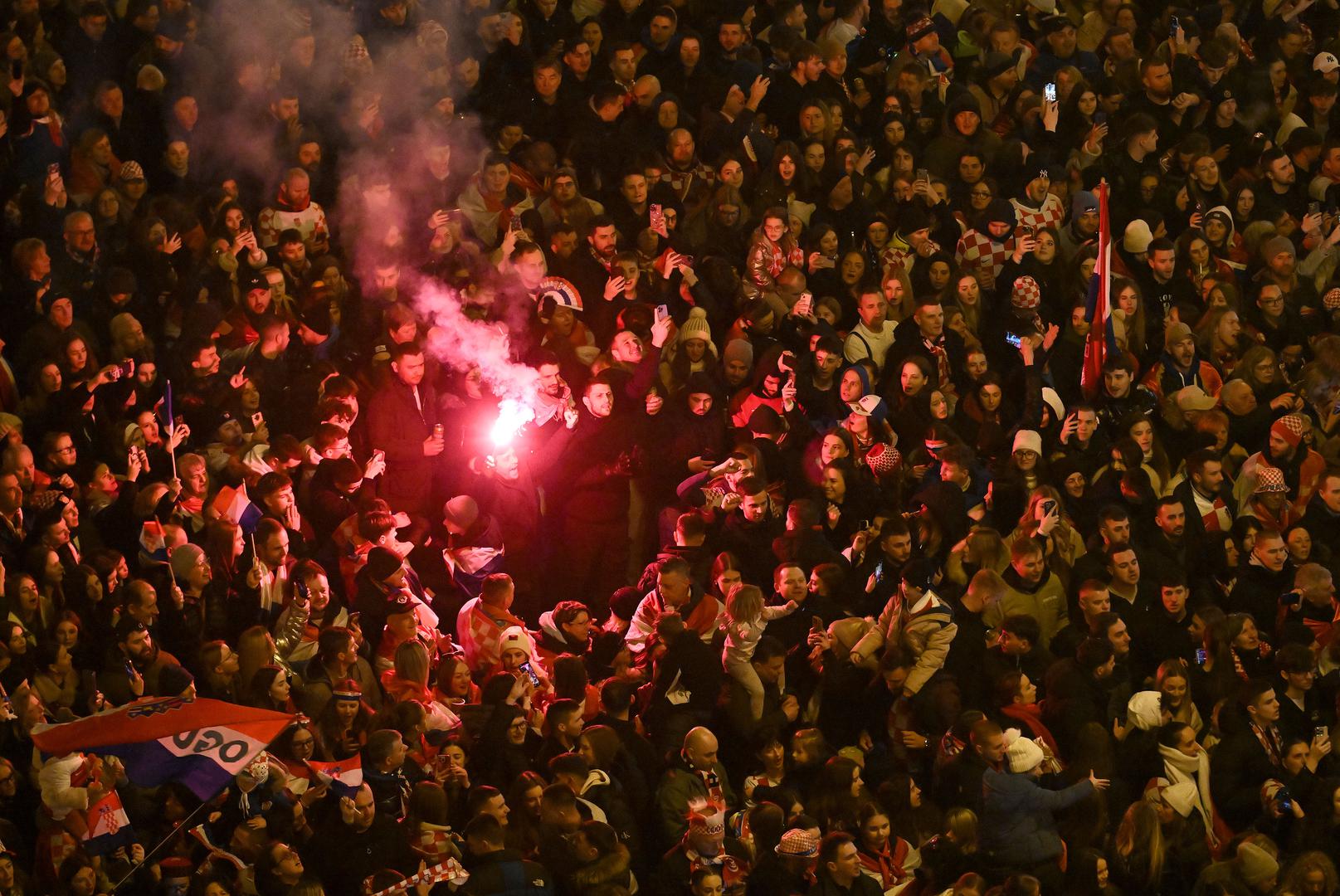 Središnji zagrebački trg punio se navijačima još u ranim popodnevnim satima, uz mnoštvo hrvatskih zastava, a ozračje na trgu zagrijavali su Zaprešić Boysi i Hrvatske ruže.