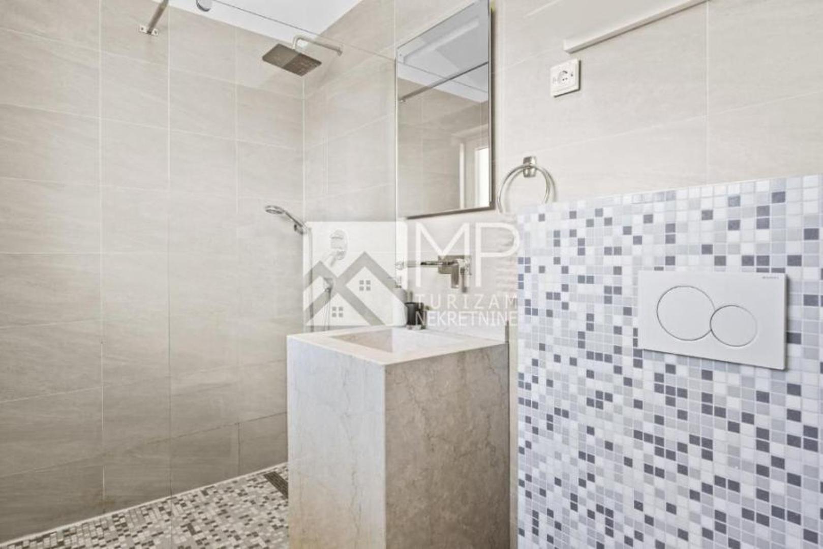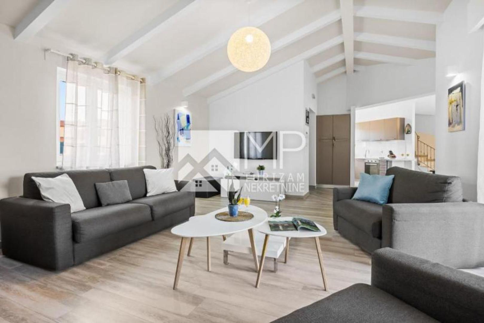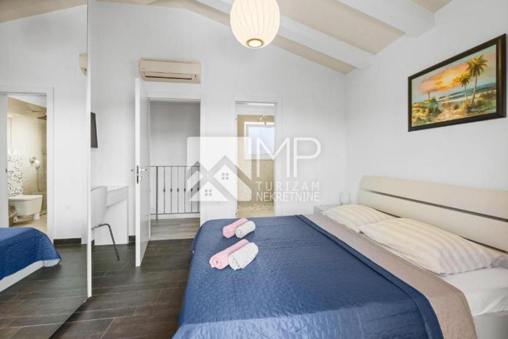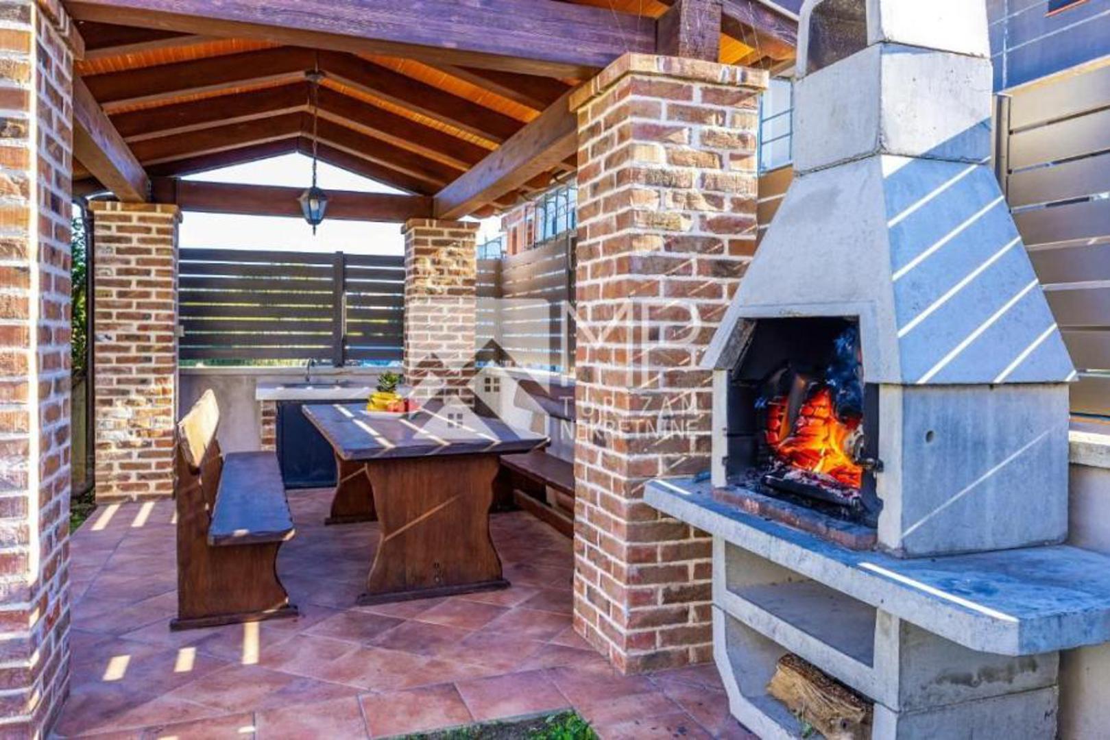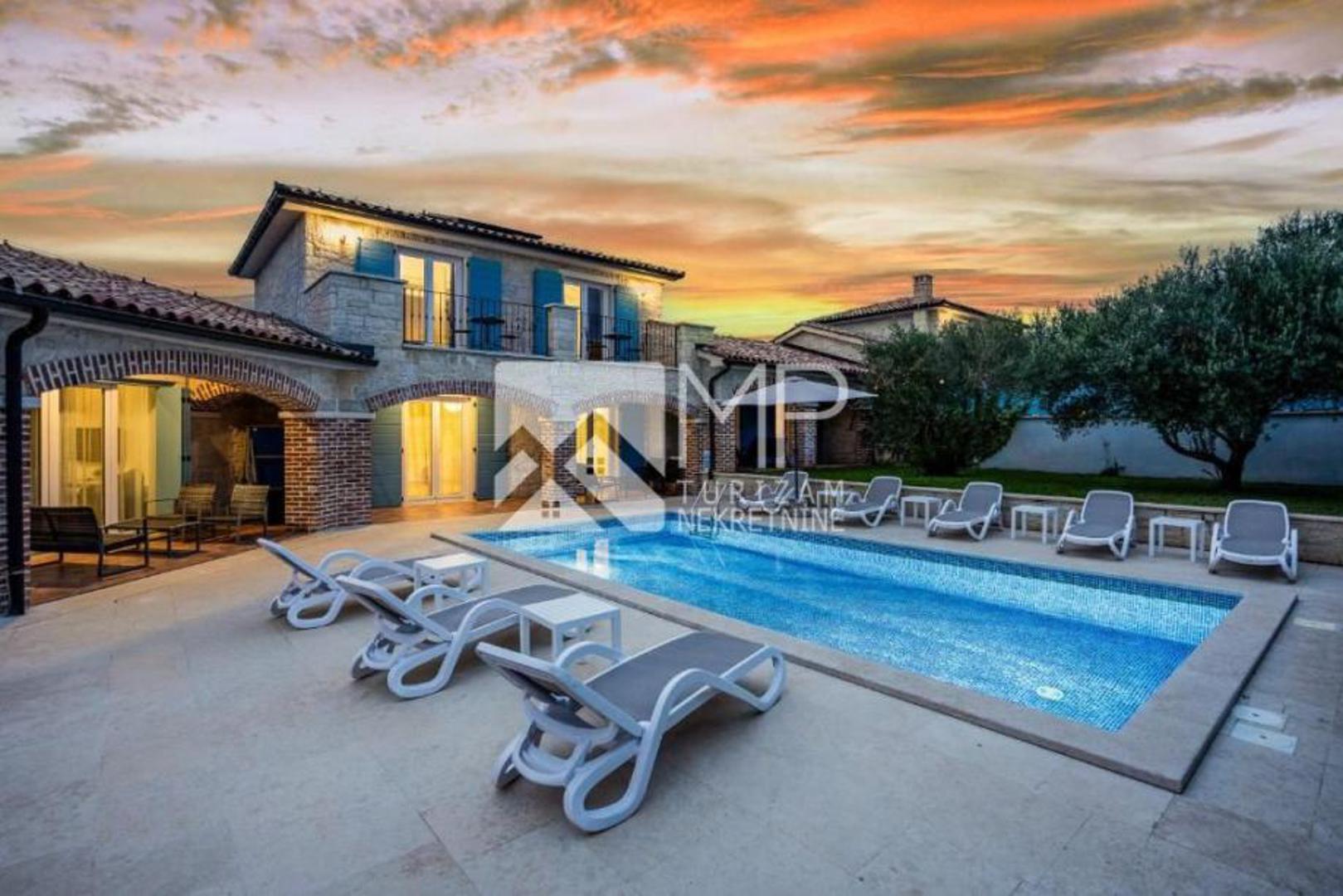 U dvorištu se nalaze dva bazena dimenzija 8 x 4 metra, sunčališta, natkrivene terase, ljetne kuhinje s roštiljem te parkiralište za četiri vozila. Vile su klimatizirane, potpuno namještene i već uhodane u turističkom najmu. Objekt je izgrađen 2013. godine, ima energetski razred A+, a vlasništvo je uredno i bez tereta. Cijena iznosi 1,800.000 eura.