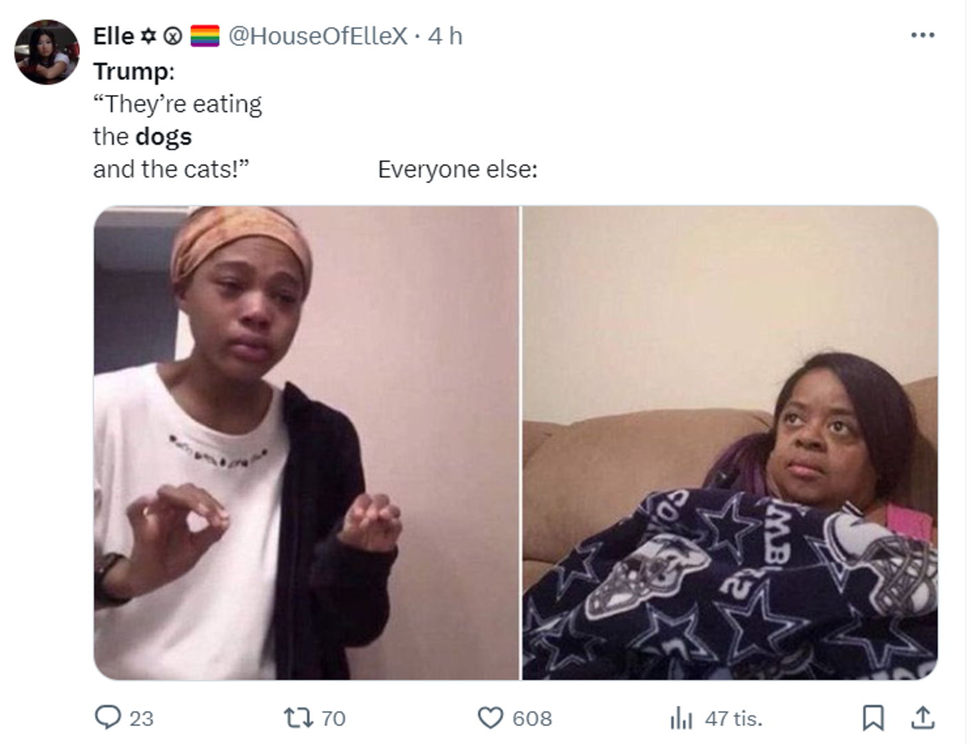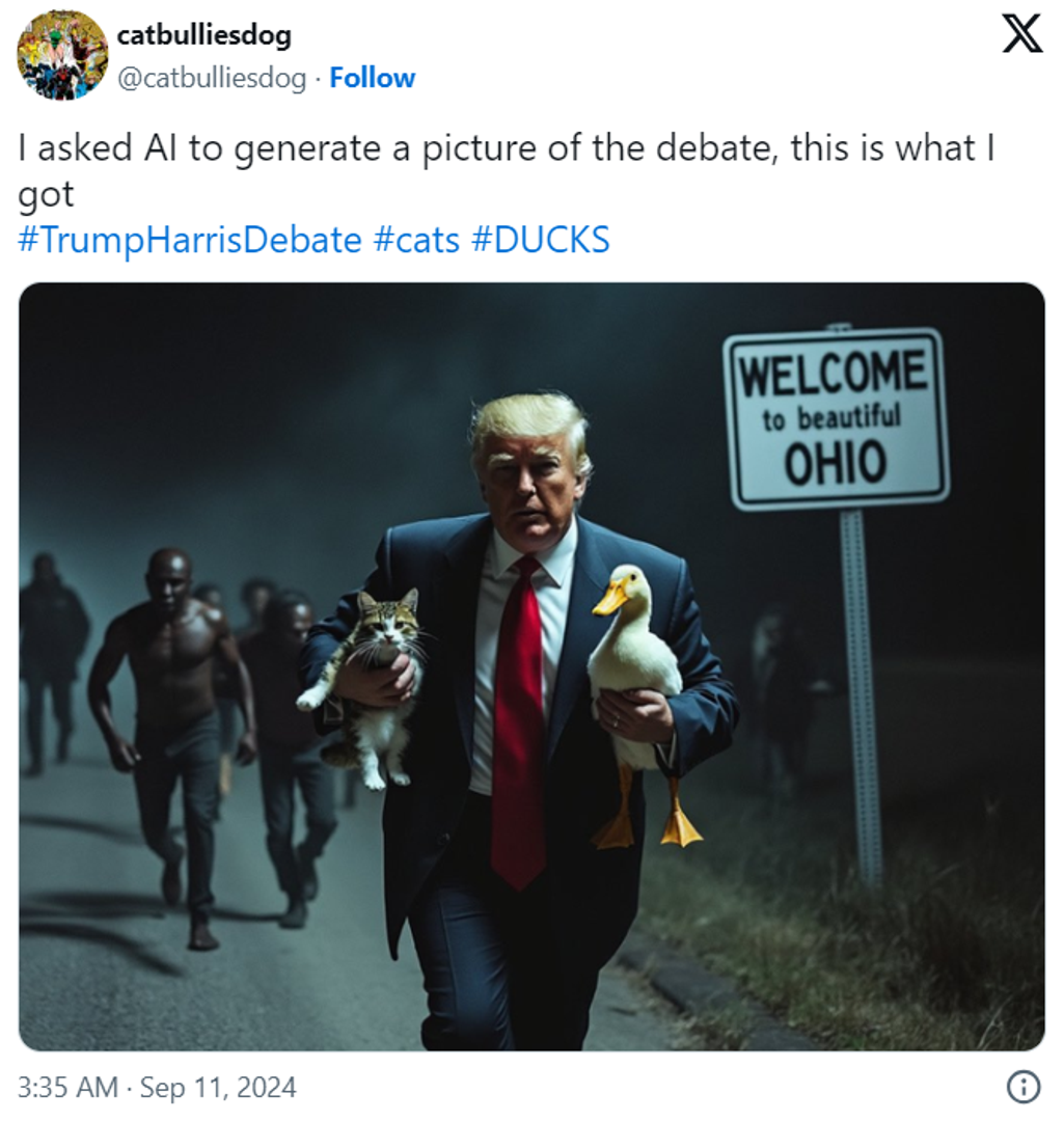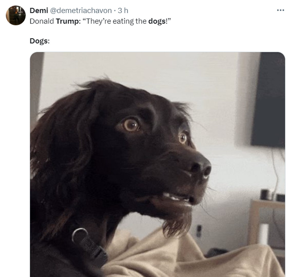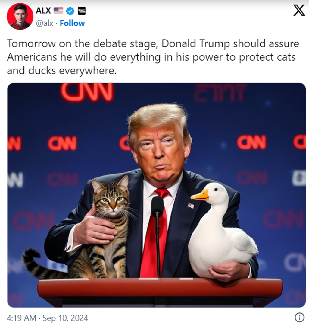 Primjerice, u jednom je trenutku tvrdio da haićanski imigranti u Springfieldu u saveznoj državi Ohio "jedu kućne ljubimce" tamošnjih stanovnika. "To je doista ekstremno", rekla je Harris smijući se.