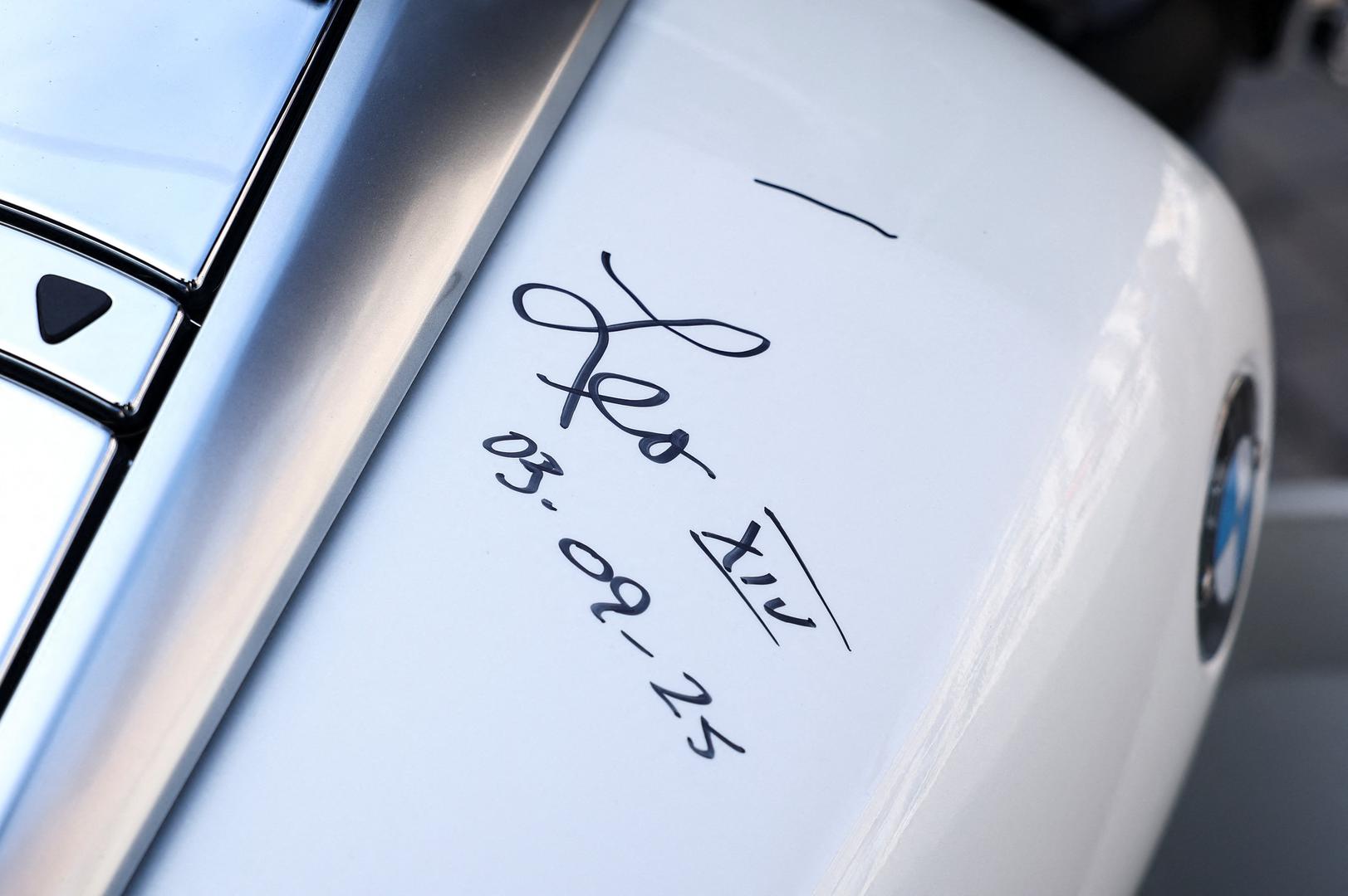 Pope Leo XIV's signature on a BMW motorcycle, on the day of the weekly general audience, at the Vatican, September 3 , 2025. REUTERS/Guglielmo Mangiapane TPX IMAGES OF THE DAY Photo: GUGLIELMO MANGIAPANE/REUTERS