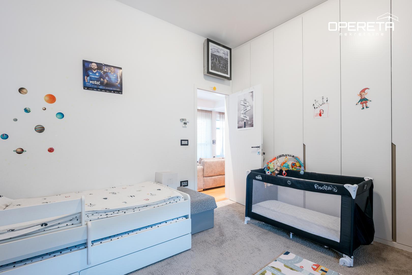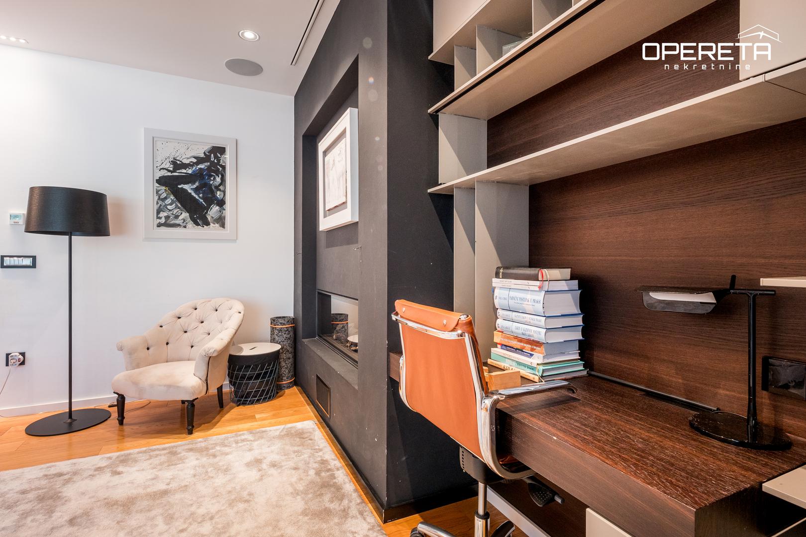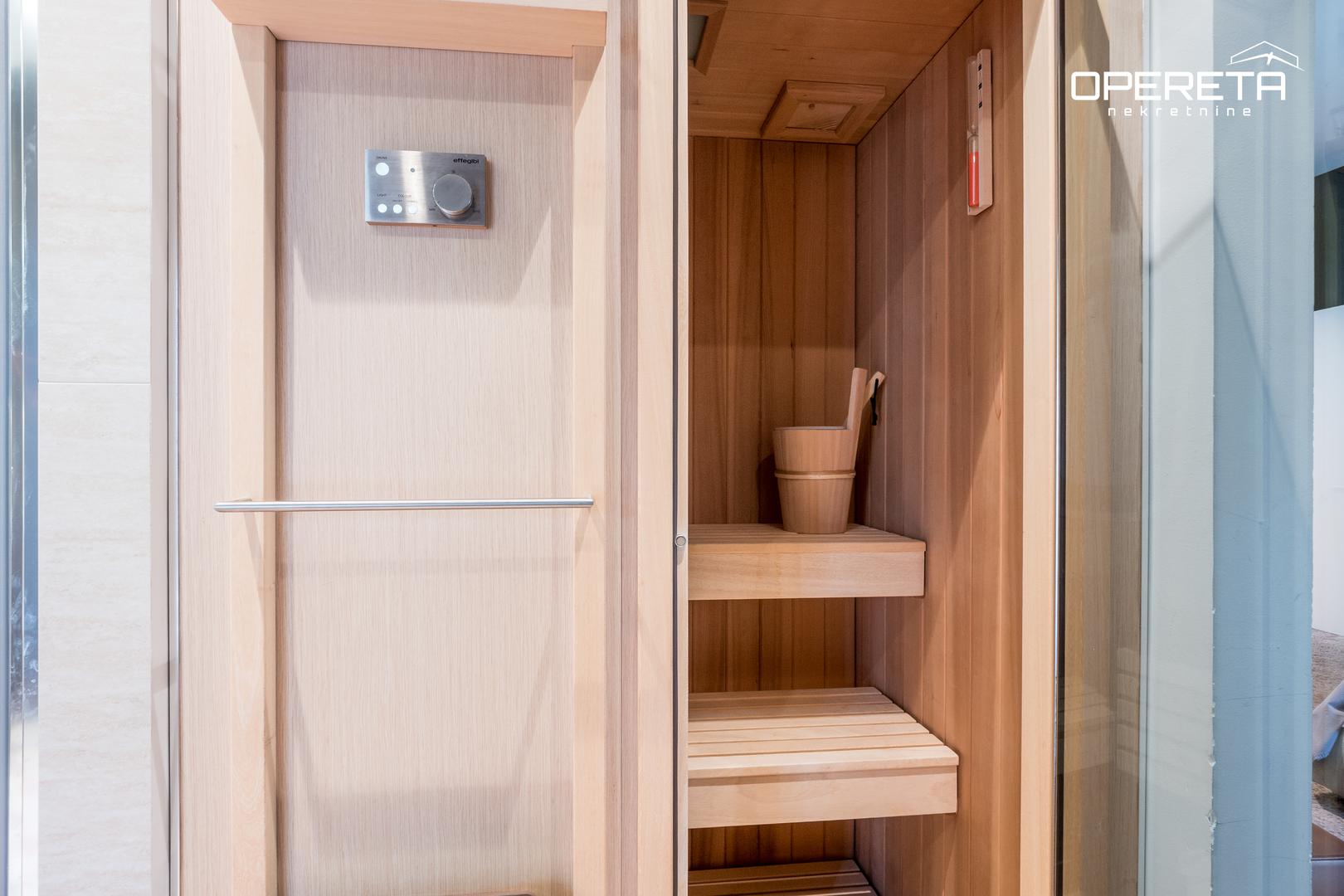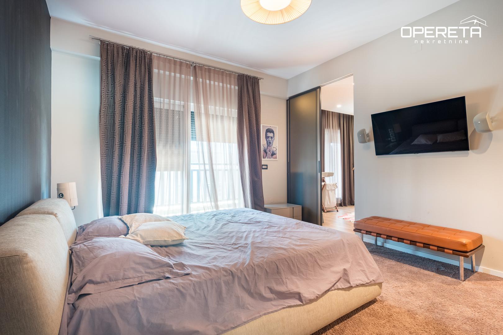 Master spavaća soba površine 26 m² nudi pravi hotelski luksuz – uz prostranu kupaonicu sa saunom, ima i izlaz na dvorišnu terasu, idealnu za opuštanje u miru centra grada. Stan dodatno raspolaže još jednom spavaćom sobom, zasebnom kupaonicom te praktičnim vešerajem.