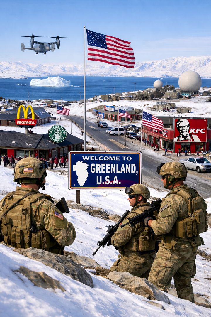 Kako se vidi na fotografijama, Grenlandom bi se vijorile američke zastave, a sve bi bilo puno američkih vojnika i vojne opreme. Uz to, na Grenlandu bi se, prema AI-u, nalazili i brojni poznati američki lanci, primarno brze hrane.
