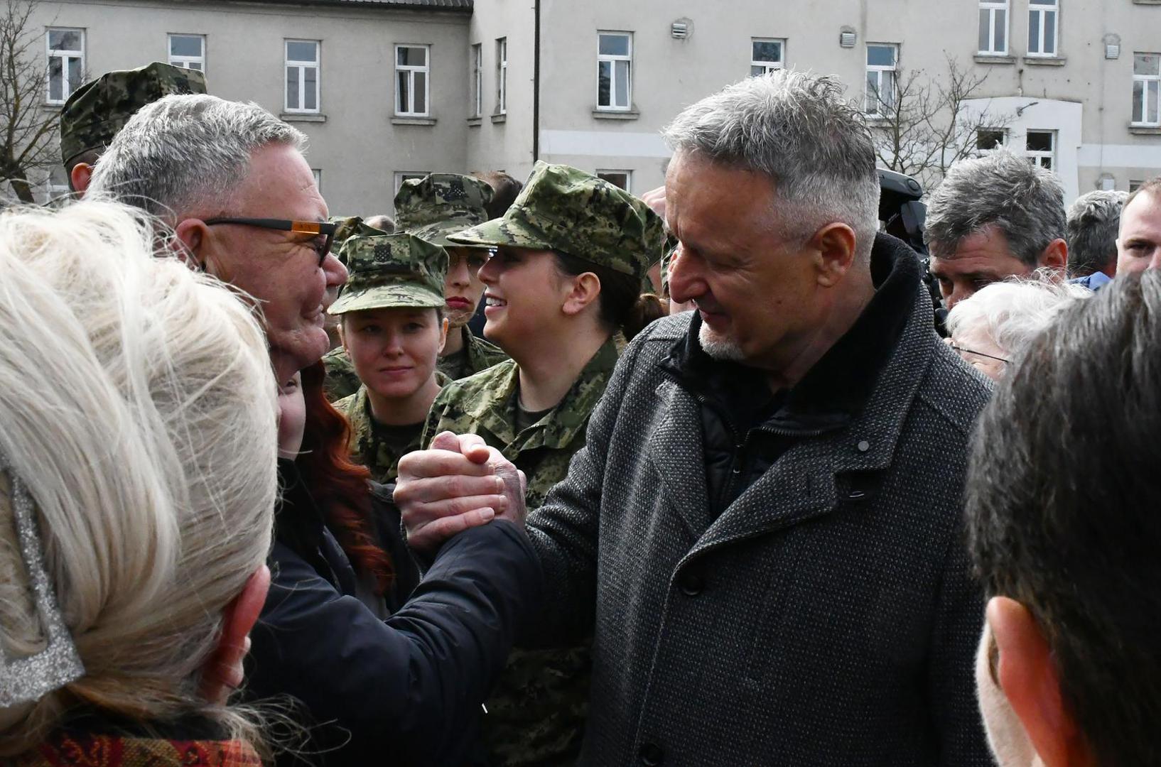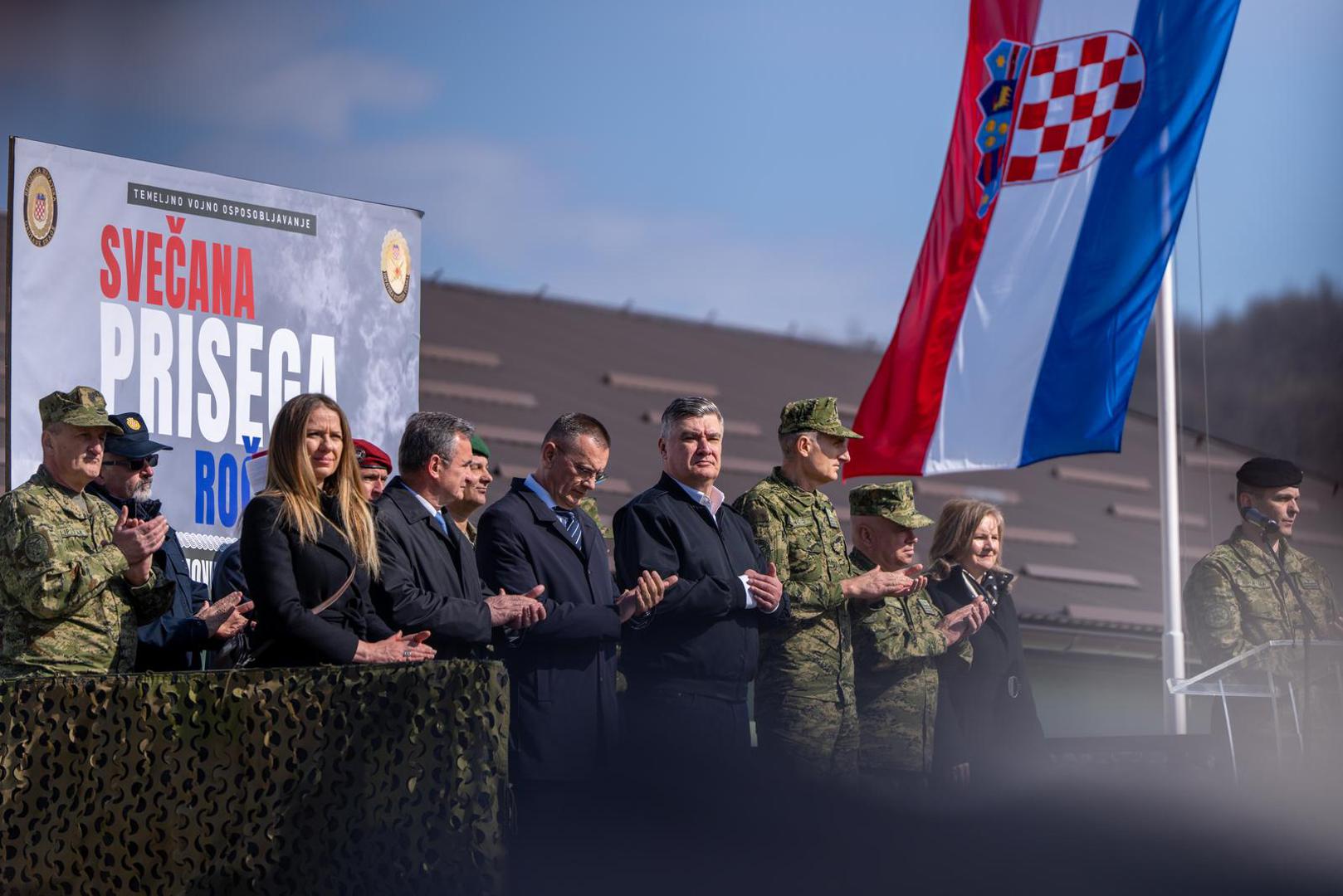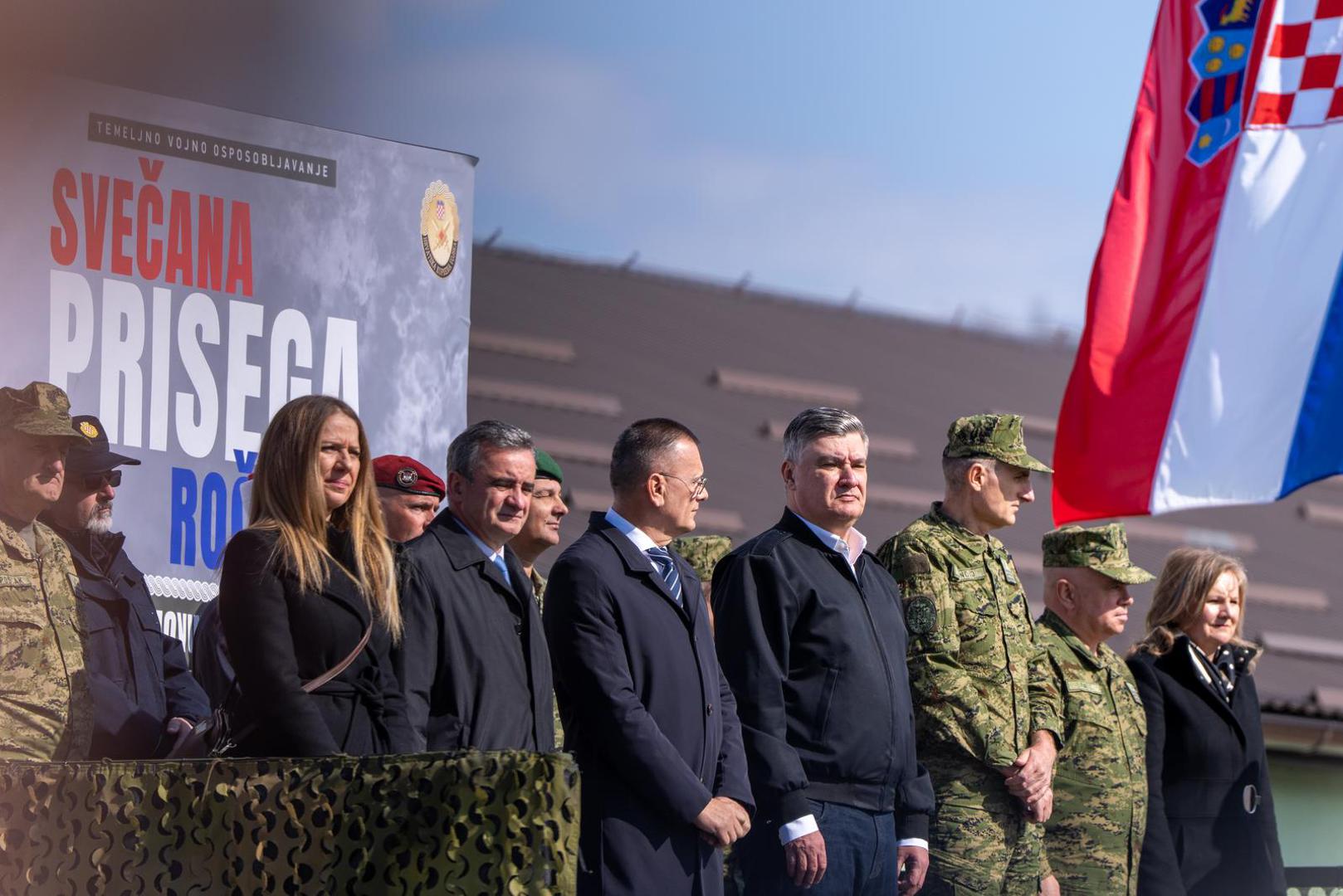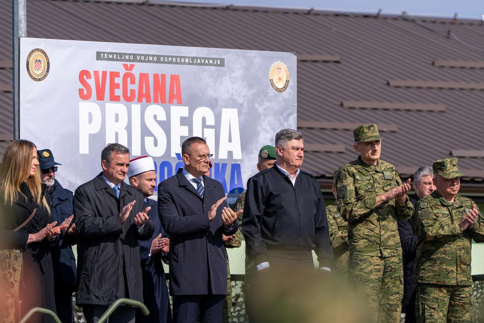 "Čestitam na prisezi! Kratka je i vrlo jasna, u svega nekoliko riječi, dvije tri rečenice, sažeto je sve. Ta prisega je dragovoljna i vi ste za mene ovdje dragovoljci. Dragovoljno ste prihvatili obuku i dragovoljno ste prihvatili položiti prisegu hrvatskoj državi i hrvatskom Ustavu i hrvatskim zakonima", poručio je predsjednik Republike i vrhovni zapovjednik Oružanih snaga Republike Hrvatske.