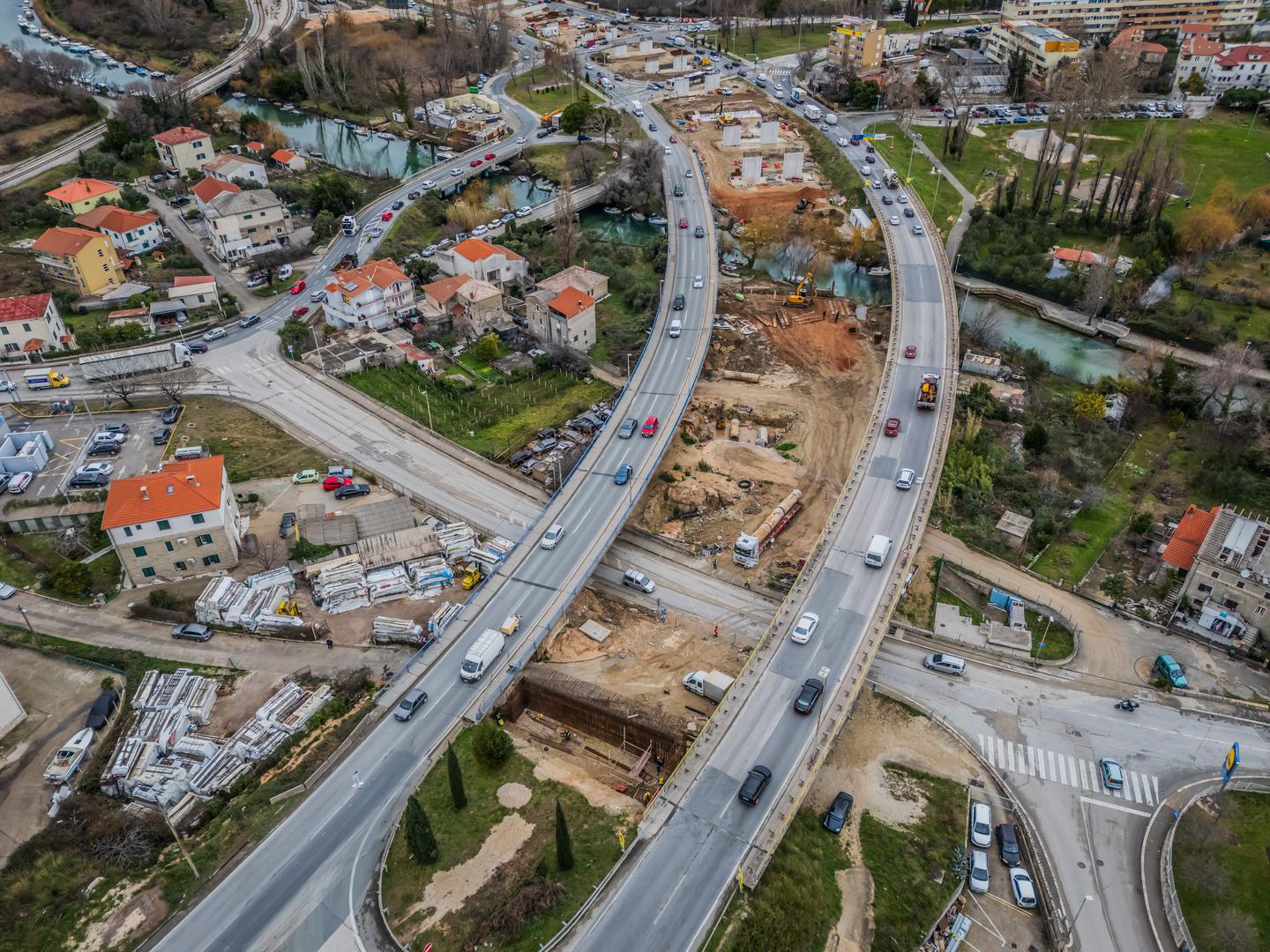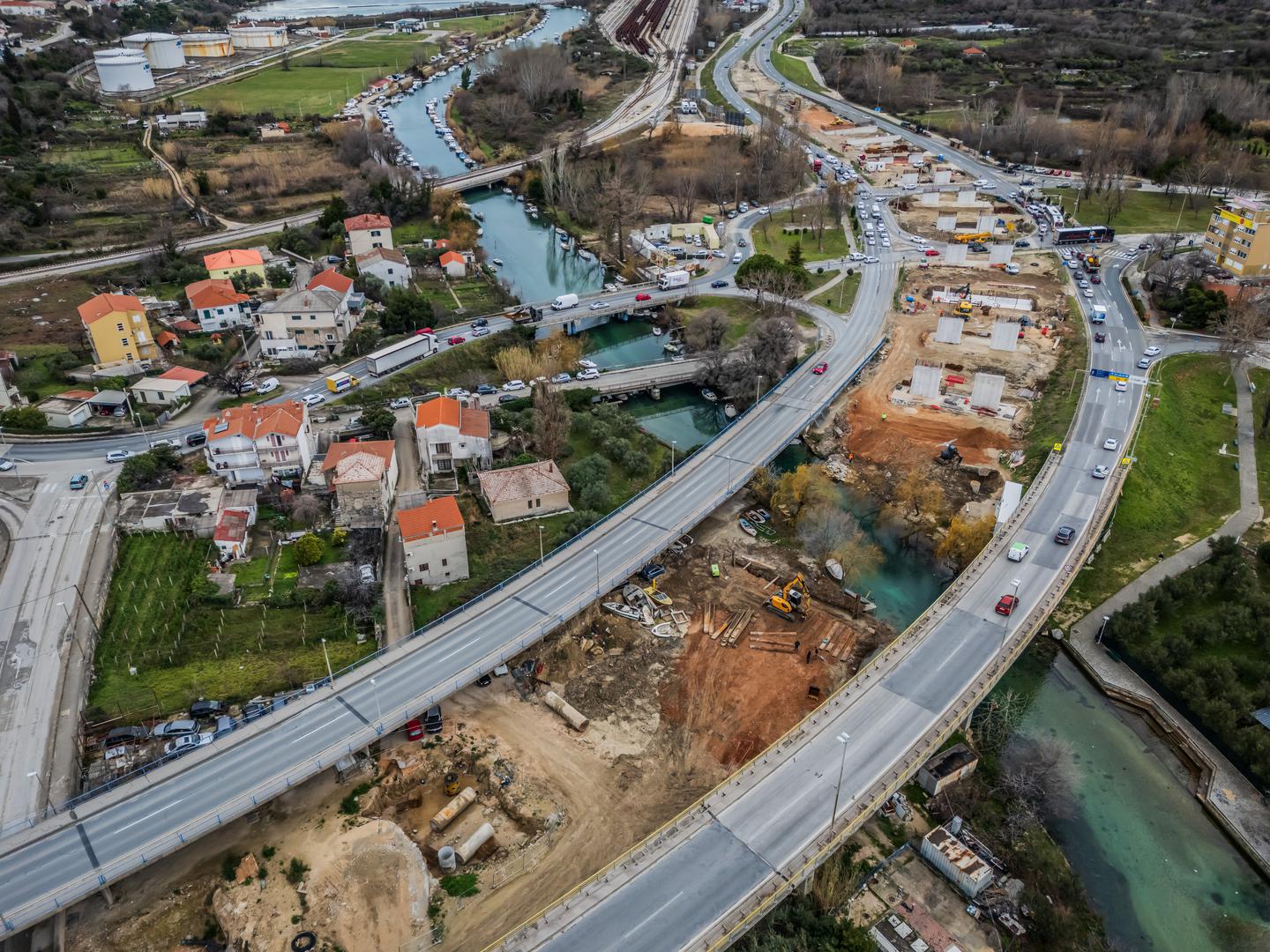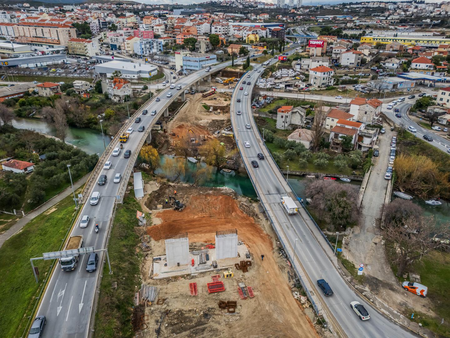 Radovi na rekonstrukciji jednog od najopterećenijih križanja u Splitsko-dalmatinskoj županiji ušli su u novu fazu. Investicija vrijedna 18 milijuna eura stigla je do izgradnje 500 metara dugog mosta preko rijeke Jadro u Solinu.