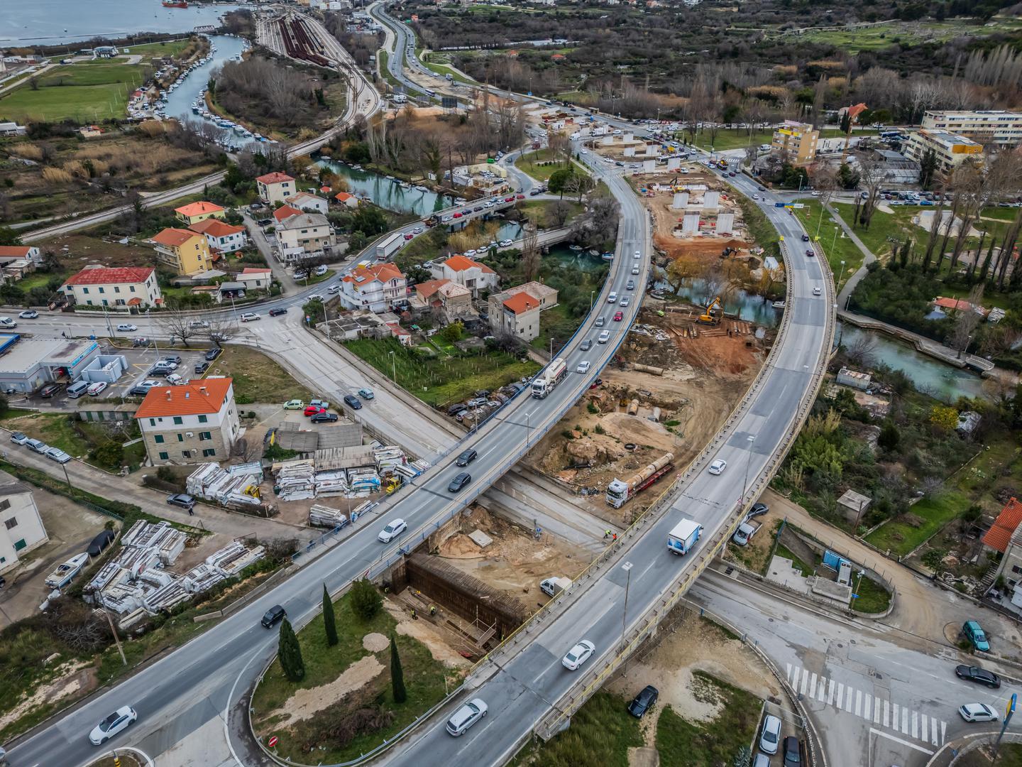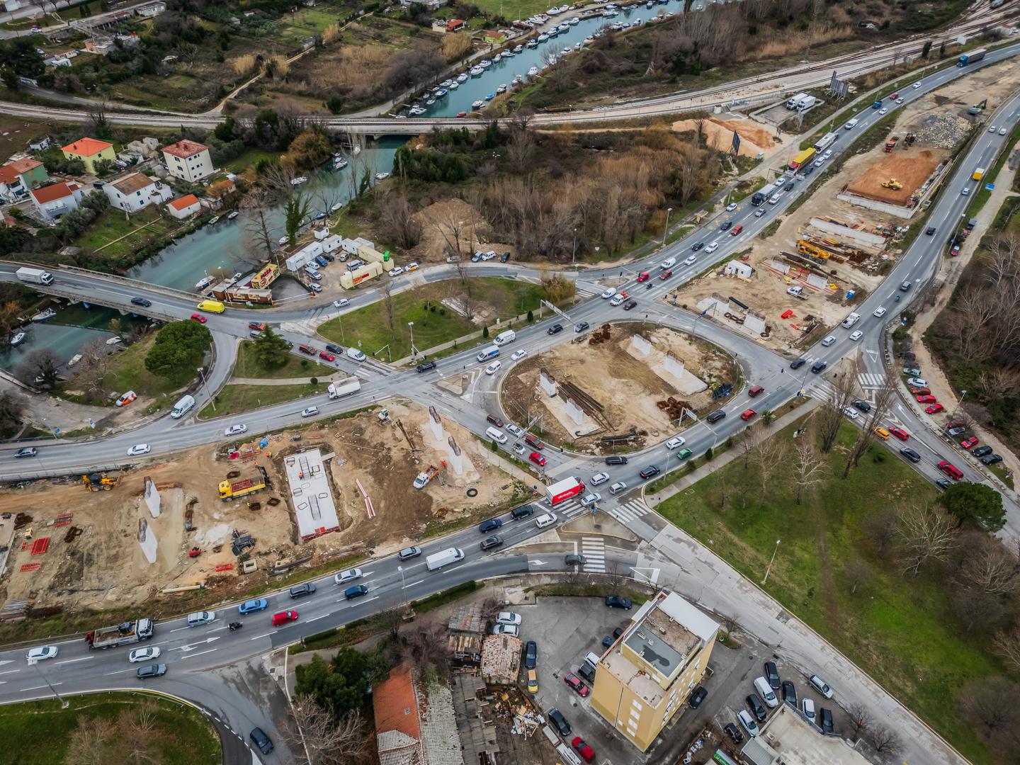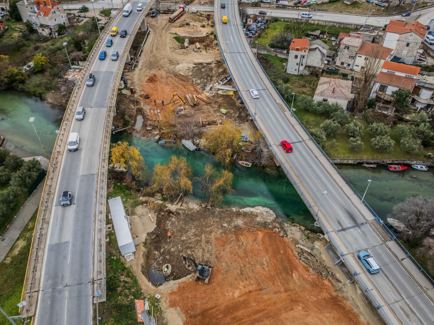 Radovi na rekonstrukciji jednog od najopterećenijih križanja u Splitsko-dalmatinskoj županiji ušli su u novu fazu. Investicija vrijedna 18 milijuna eura stigla je do izgradnje 500 metara dugog mosta preko rijeke Jadro u Solinu.