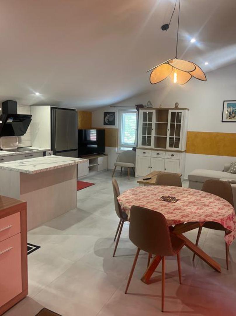Kuća je zidana od betona i opeke, potpuno renovirana 2023. godine i opremljena modernim namještajem, pa je odmah useljiva. Raspolaže s četiri spavaće sobe, dva dnevna boravka i dvjema potpuno opremljenim kuhinjama izrađenima po mjeri.