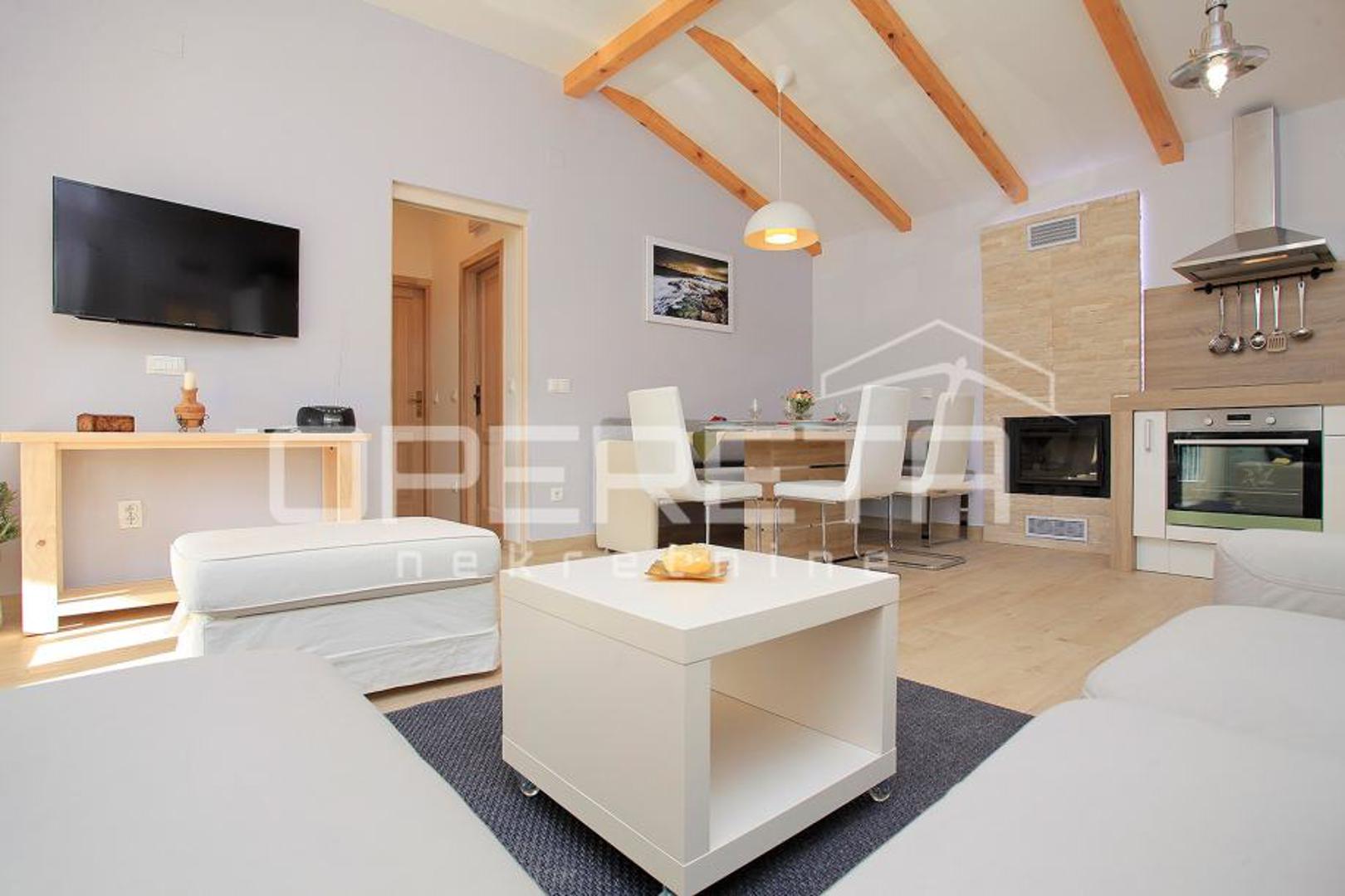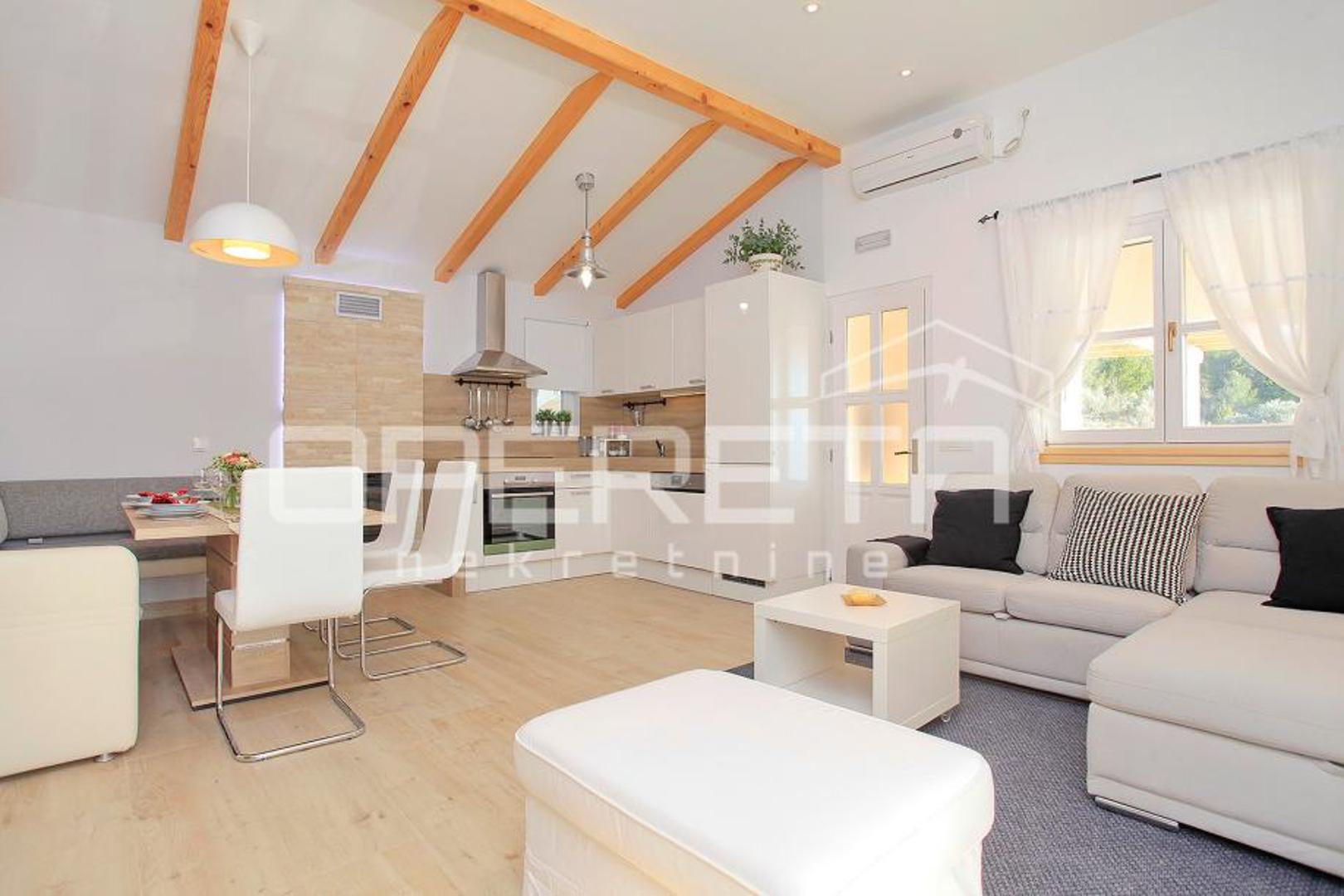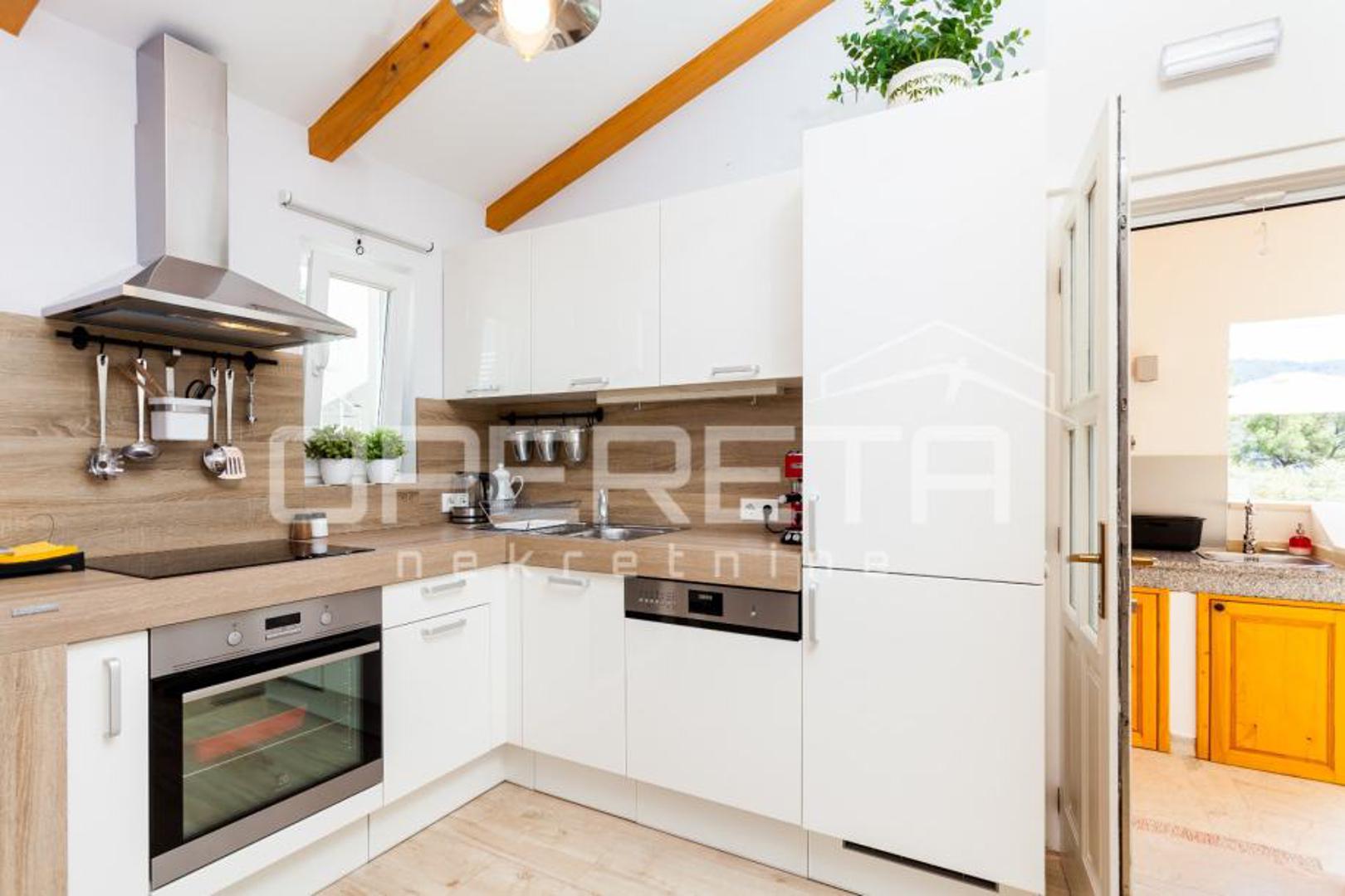 Uz elegantno uređene unutarnje prostore, kuća nudi i bogat vanjski sadržaj. Tu su terasa i lođa, vanjska kuhinja s roštiljem i šankom, grijani bazen sa sunčalištem, sauna te dodatni prostor za obiteljski odmor i zabavu, uključujući dječju zonu s trampolinom, pješčanikom i stolnim tenisom.