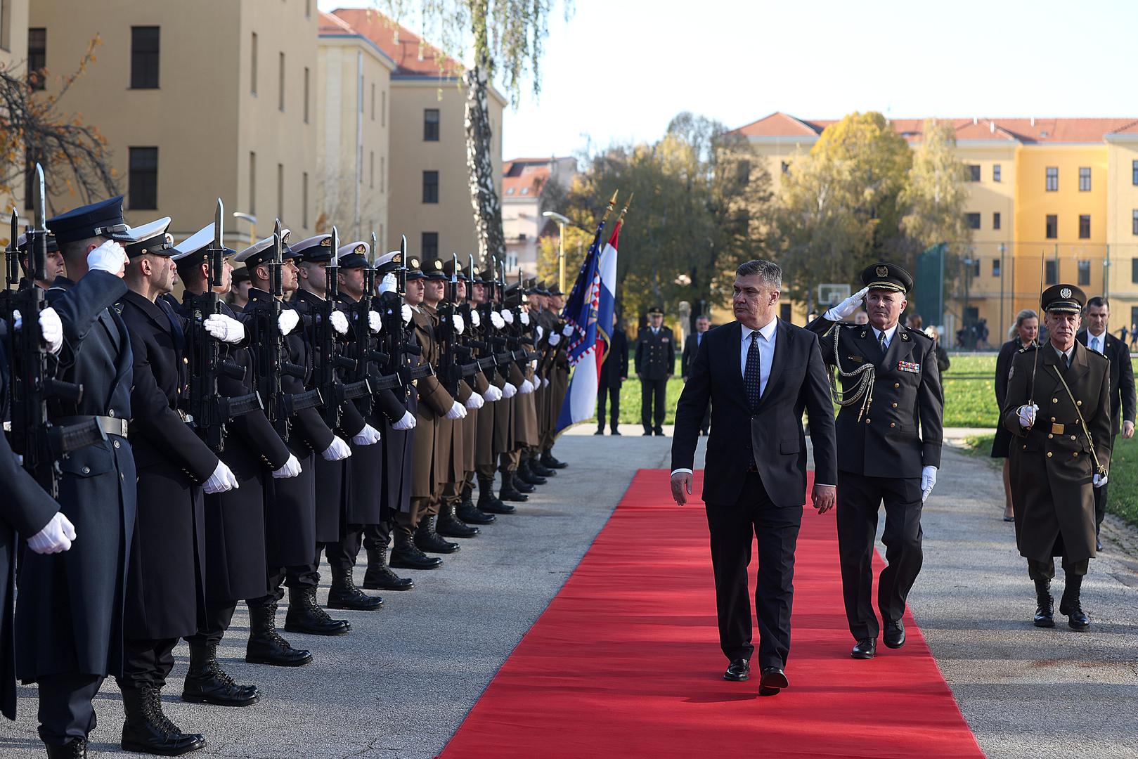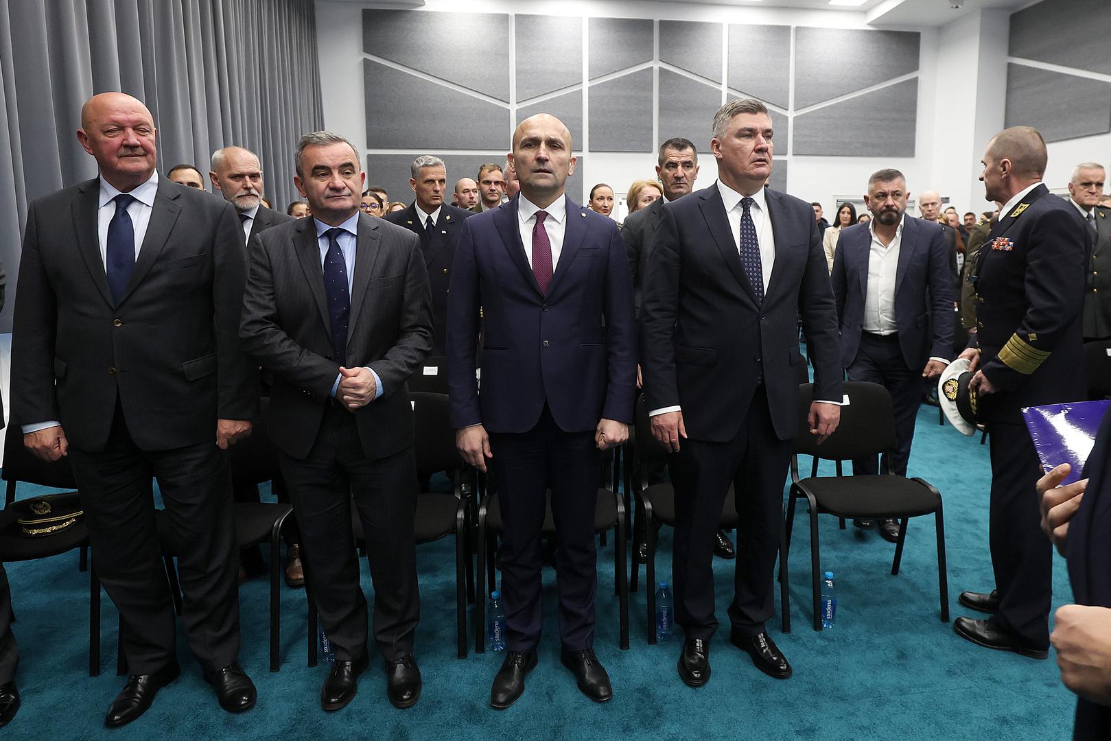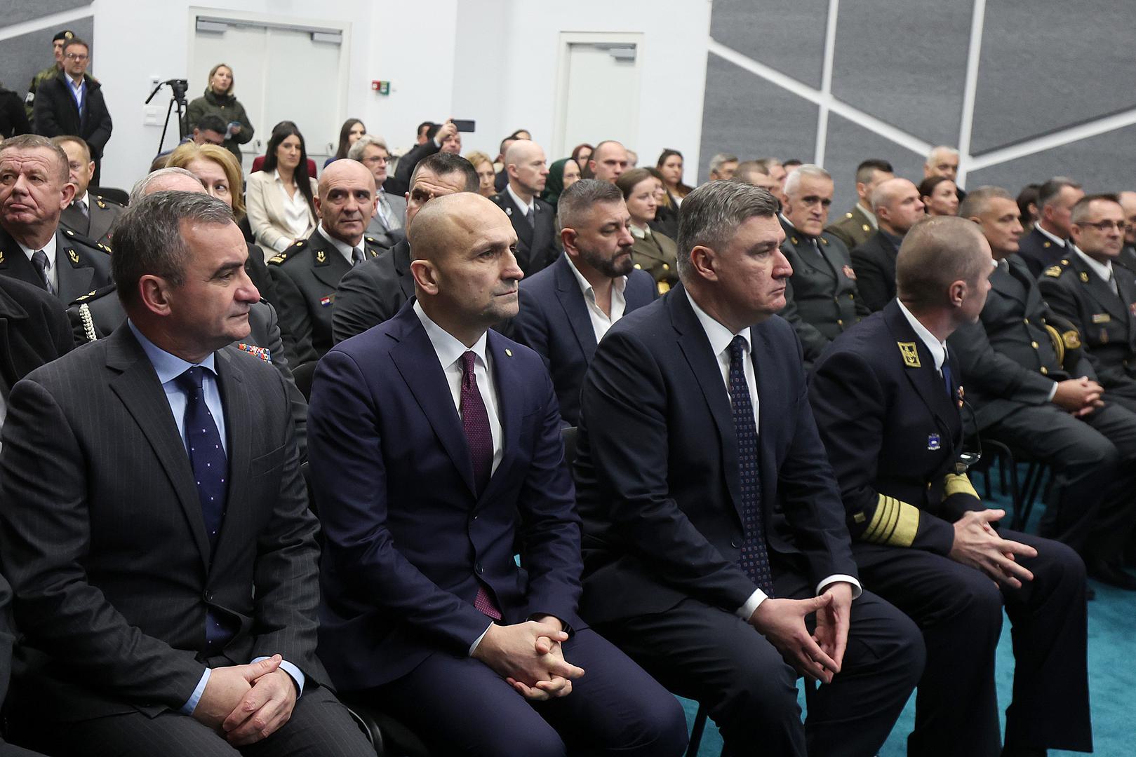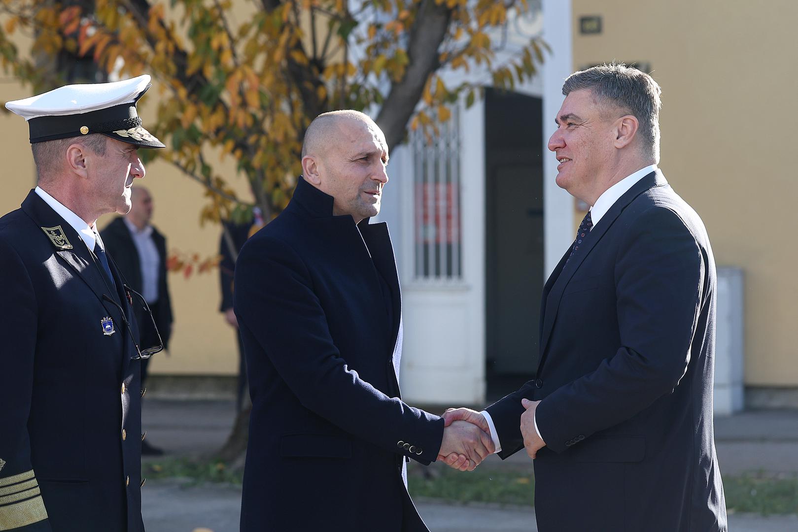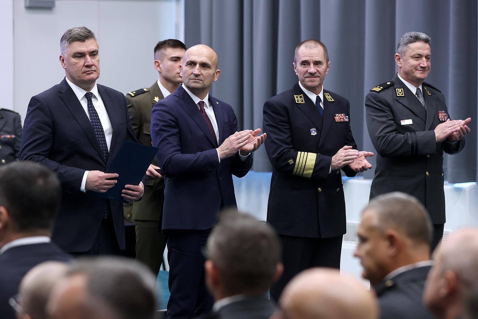 'Želim svu sreću, znanje i umijeće hrvatskoj izvršnoj vlasti i ovdje prisutnom ministru u opremanju Hrvatske vojske, u završetku projekata u koje smo krenuli prije puno godina. To mislim prije svega na neke stvari vezane uz Hrvatsku ratnu mornaricu i Obalnu stražu, to će biti jako teško', izjavio je predsjednik Republike Zoran Milanović na Hrvatskom vojnom učilištu 'Dr. Franjo Tuđman' gdje je sudjelovao na promociji novih časnica i časnika Oružanih snaga Republike Hrvatske i dodjeli prvih časničkih činova zdravstvene službe.