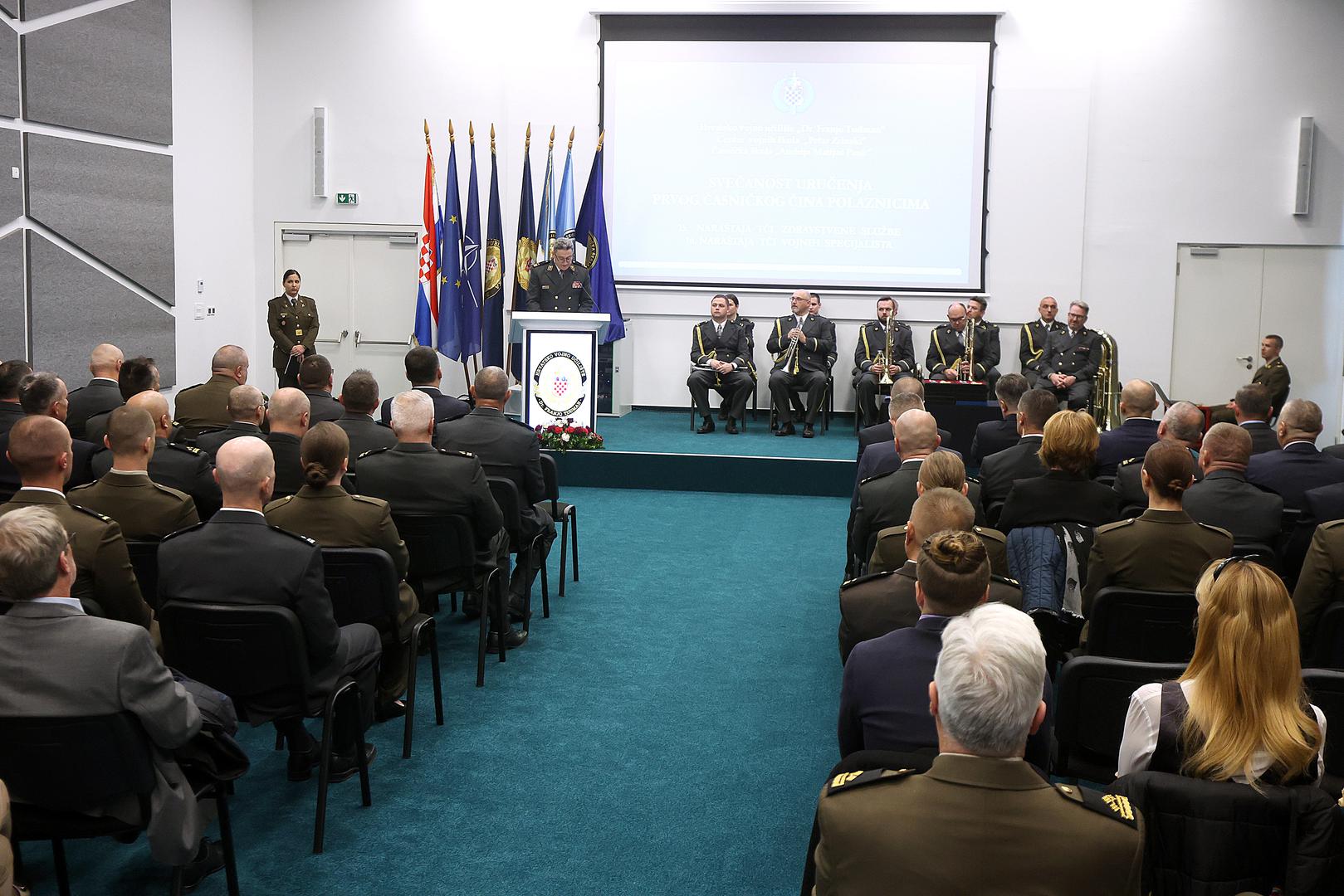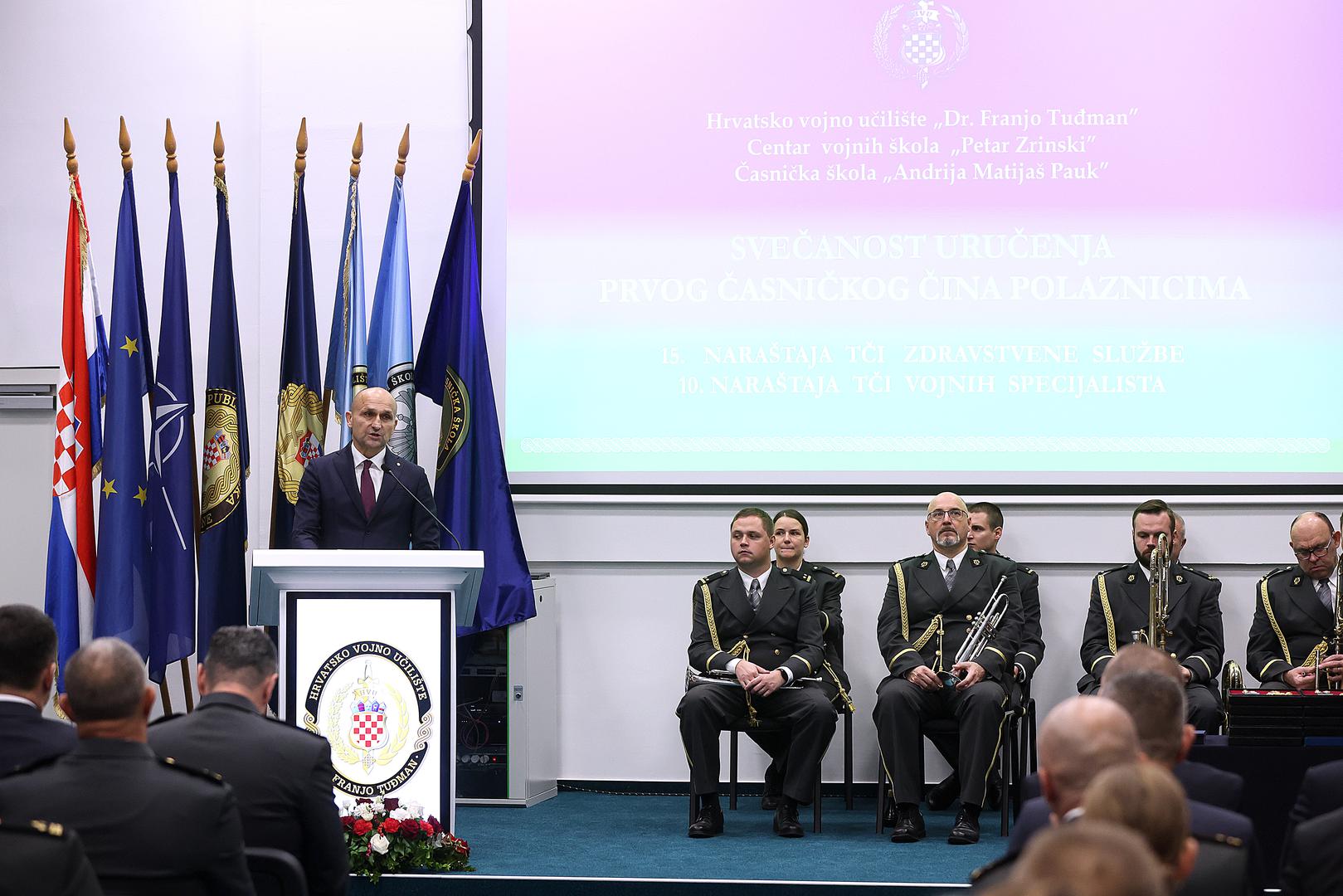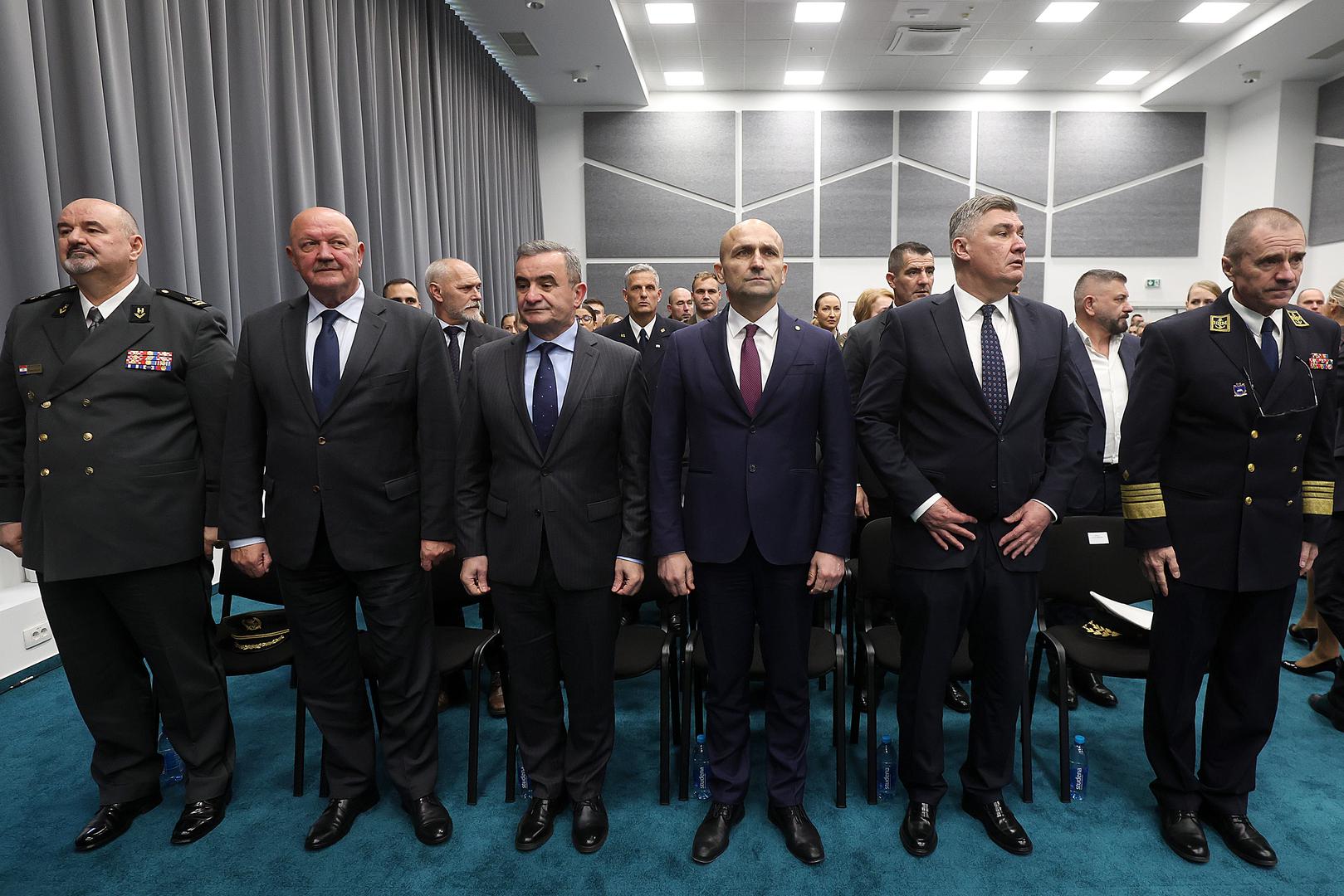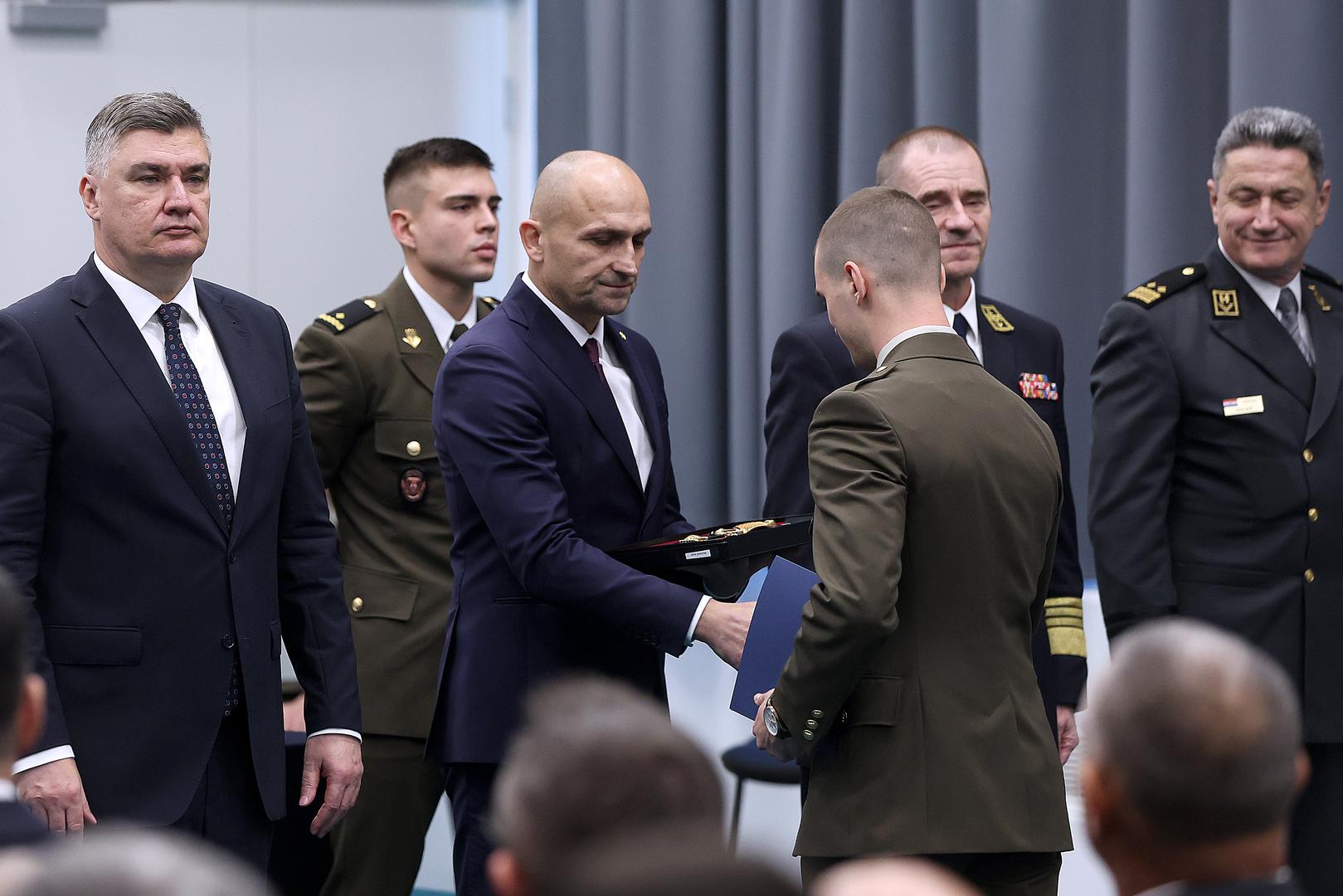 'Želim svu sreću, znanje i umijeće hrvatskoj izvršnoj vlasti i ovdje prisutnom ministru u opremanju Hrvatske vojske, u završetku projekata u koje smo krenuli prije puno godina. To mislim prije svega na neke stvari vezane uz Hrvatsku ratnu mornaricu i Obalnu stražu, to će biti jako teško', izjavio je predsjednik Republike Zoran Milanović na Hrvatskom vojnom učilištu 'Dr. Franjo Tuđman' gdje je sudjelovao na promociji novih časnica i časnika Oružanih snaga Republike Hrvatske i dodjeli prvih časničkih činova zdravstvene službe.