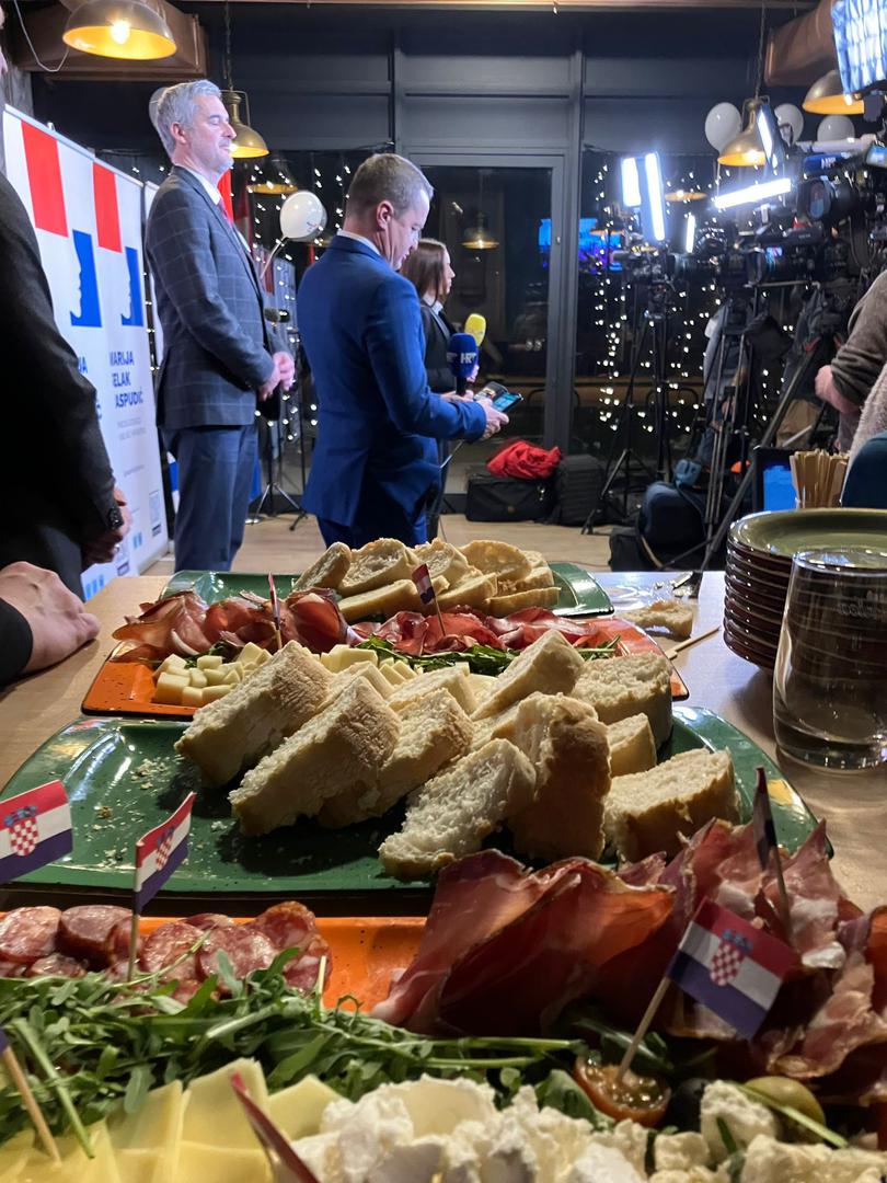 Niko Tokić Kartelo svojim gostima u stožeru za početak je ponudio hladne zalogajčiće. Bilo je kulena, zimske, pancete, raznih vrtsa sireva salate...