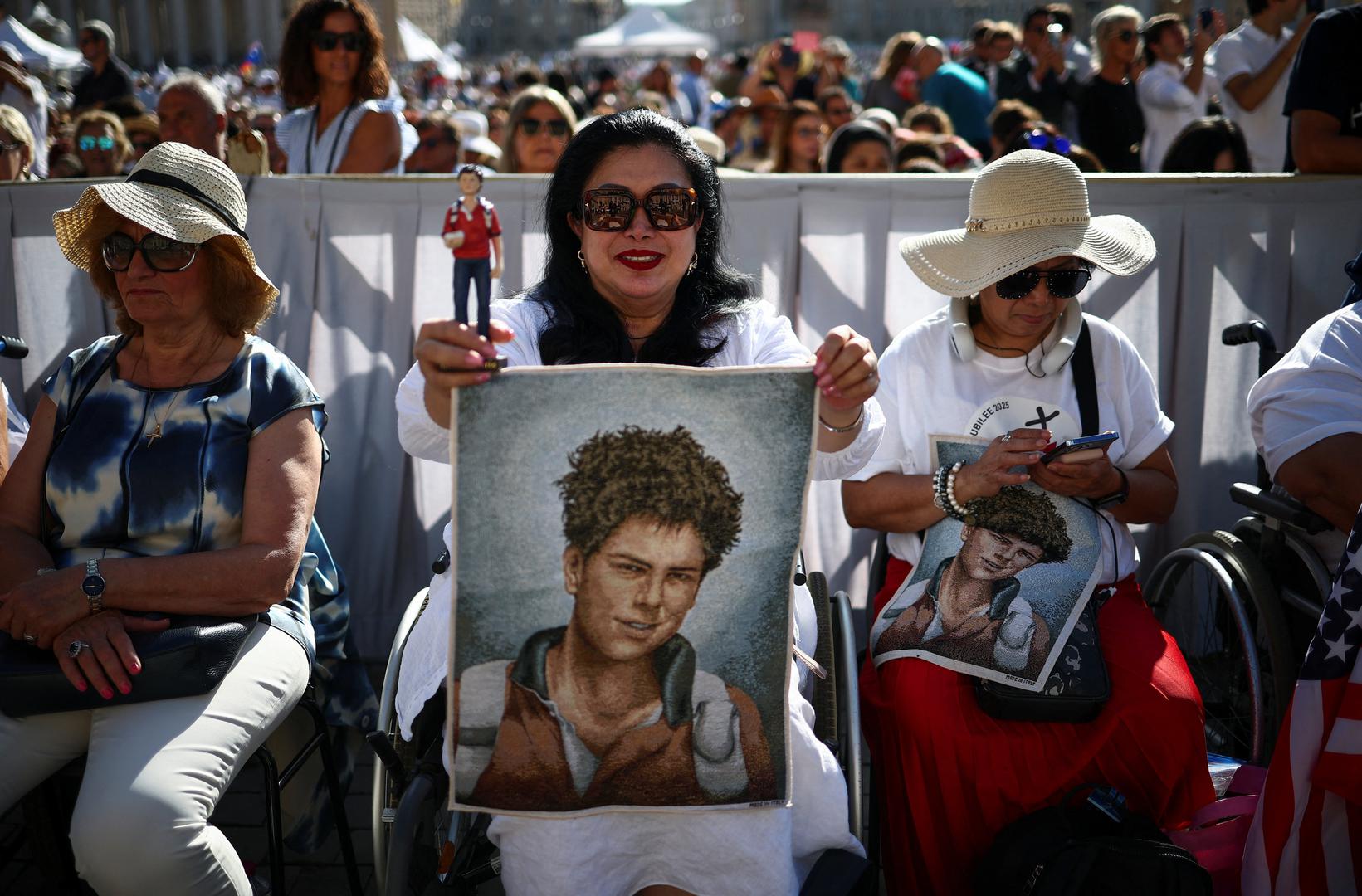 Clara Marugan Martin, 20 godina, došla je iz Španjolske na događaj. "Jako nam je drago što smo ovdje jer su Carlo i Pier Giorgio dva primjera mladih ljudi punih Boga, punih milosti, i mi želimo slijediti njihove korake", rekla je. Biti proglašen svetim znači da Crkva vjeruje da je osoba živjela svetim životom i da je sada u raju s Bogom.