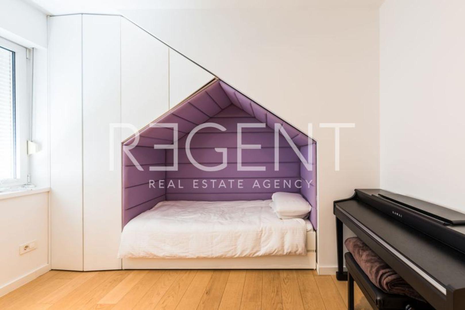 U Zagrebu, na mirnom i urbanom dijelu Črnomerca, prodaje se raskošan dvoetažni penthouse površine 210 m², po cijeni od 895.000 €. Stan je smješten na trećem katu stambene zgrade iz 2012. godine i uključuje četiri sobe, dvije etaže, balkon, dva garažna parkirna mjesta te spremište.