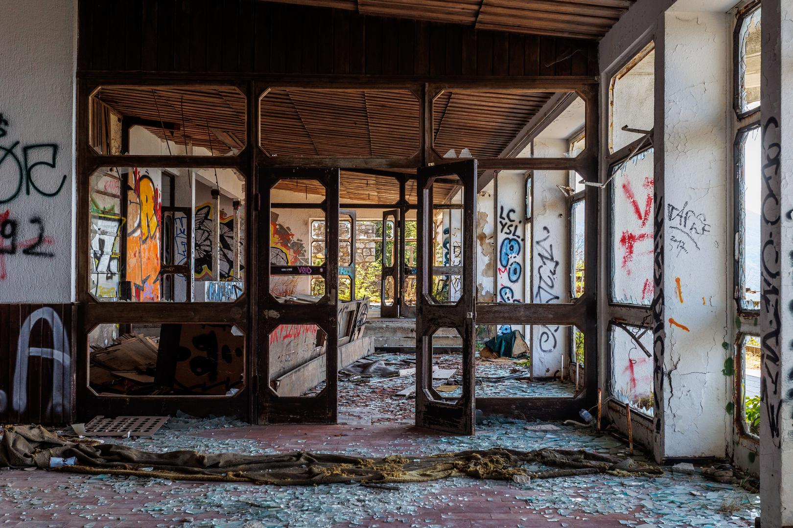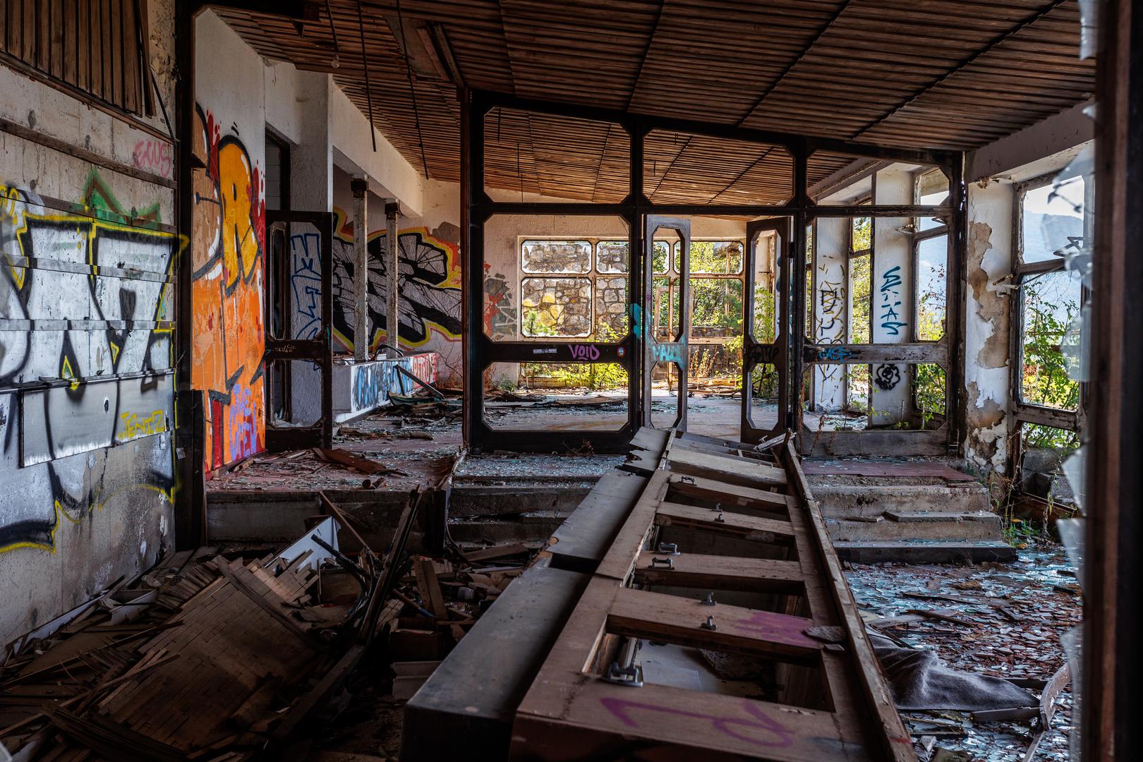 Tišinu u napuštenoj građevini kvari samo vjetar koji se provlači kroz razbijene prozore i napukle zidove. Šetnju sablasno praznim prostorijama, narušava i škripanje smeća, šute i razbijenog stakla pod cipelama... U daljini mrmori i promet, auti se više ne zaustavljaju na mjestu koji je nekad vrvjelo gostima