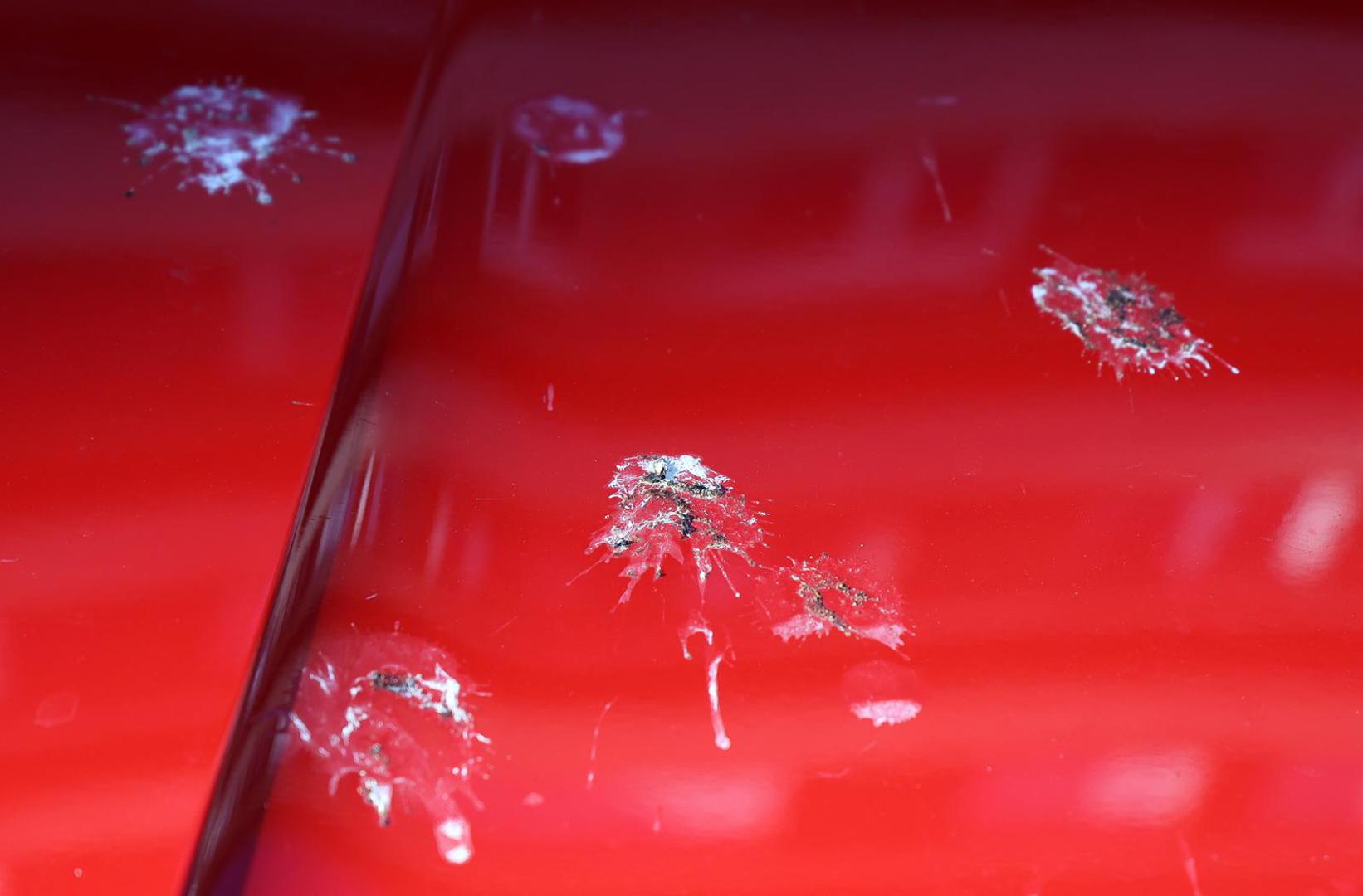 Izmet se zadržava na vjetrobranskim staklima, krovovima i haubama vozila, a poznato je da zbog svoje kiselosti može oštetiti lak i površinu automobila ako se ne ukloni na vrijeme