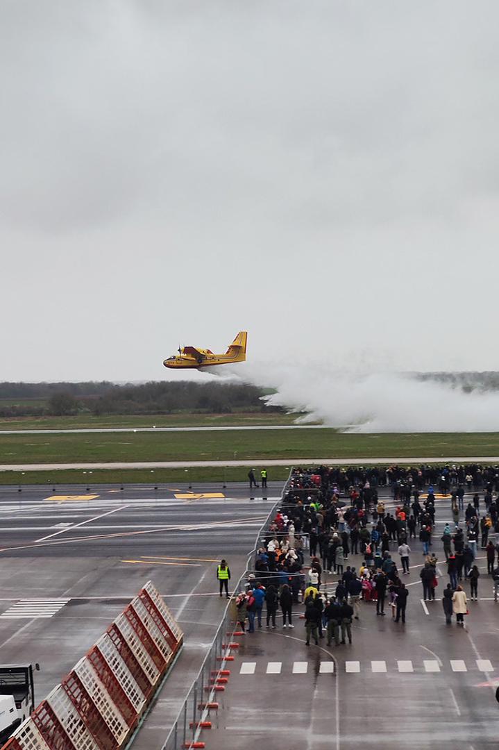 Unatoč lošim meteo uvjetima zrakoplovna priredba u Zračnoj luci Pula privukla je više od 3000 posjetitelja, a nadasve djecu i mlade koji su oduševljeno razgledavali zrakoplove i zanimljivi letački program Hrvatskog ratnog zrakoplovstva koji je otvoren preletom dva višenamjenska borbena aviona Rafale.