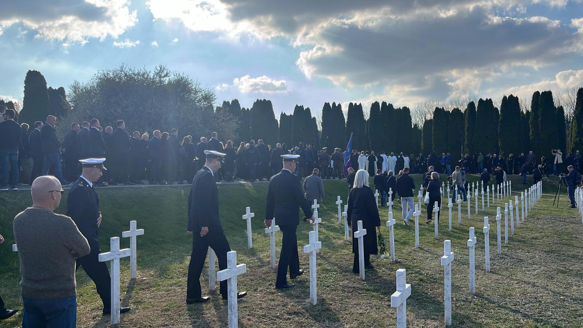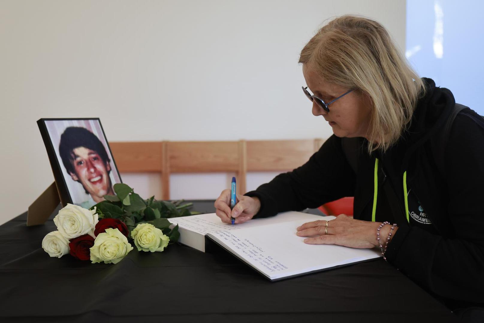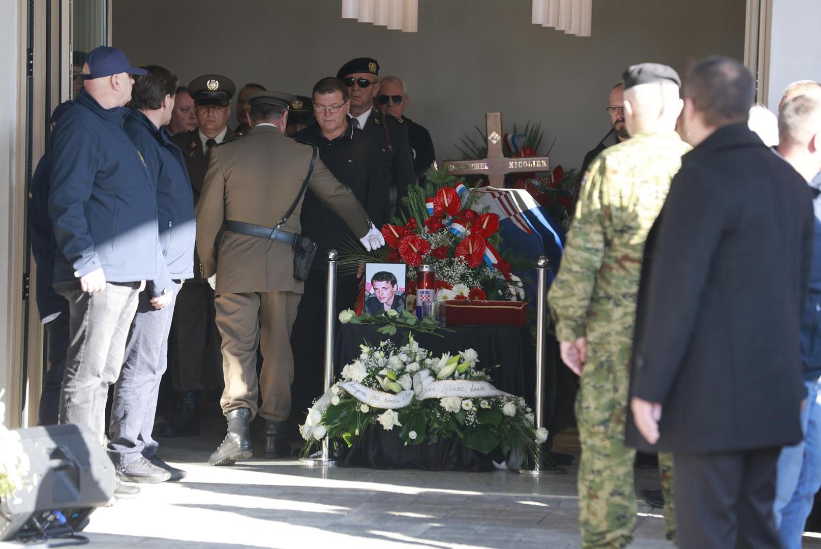 Tomo Medved je prvi upisao svoje ime u knjigu žalosti na Memorijalnom groblju žrtava Domovinskog rata, dok je majka Nicoliera, Lyliane, s bratom Paulom i rodbinom došla pred lijes i poklonila se svome sinu.