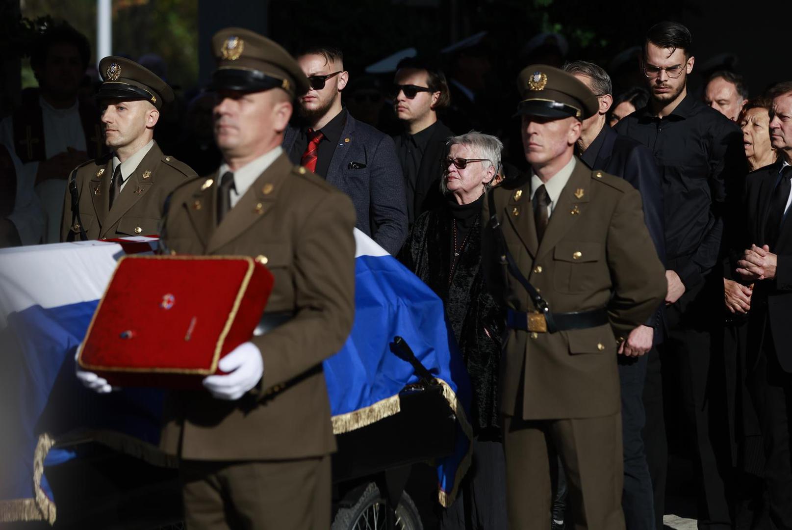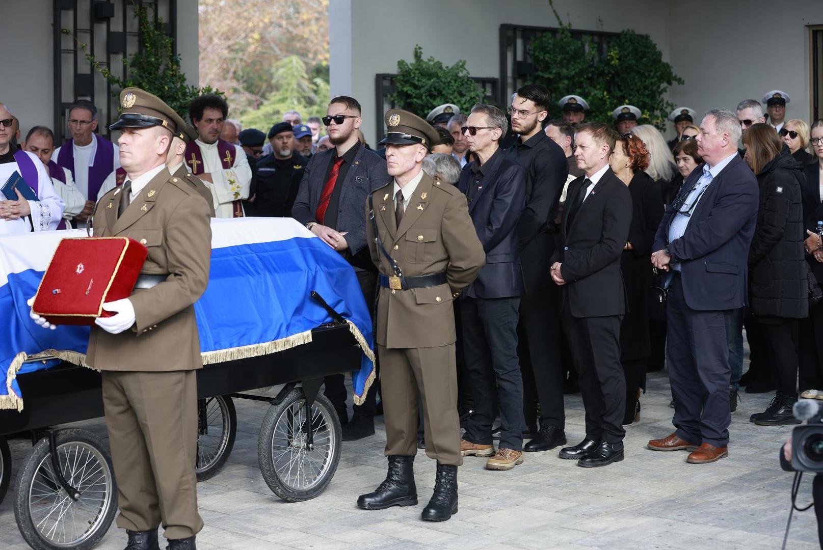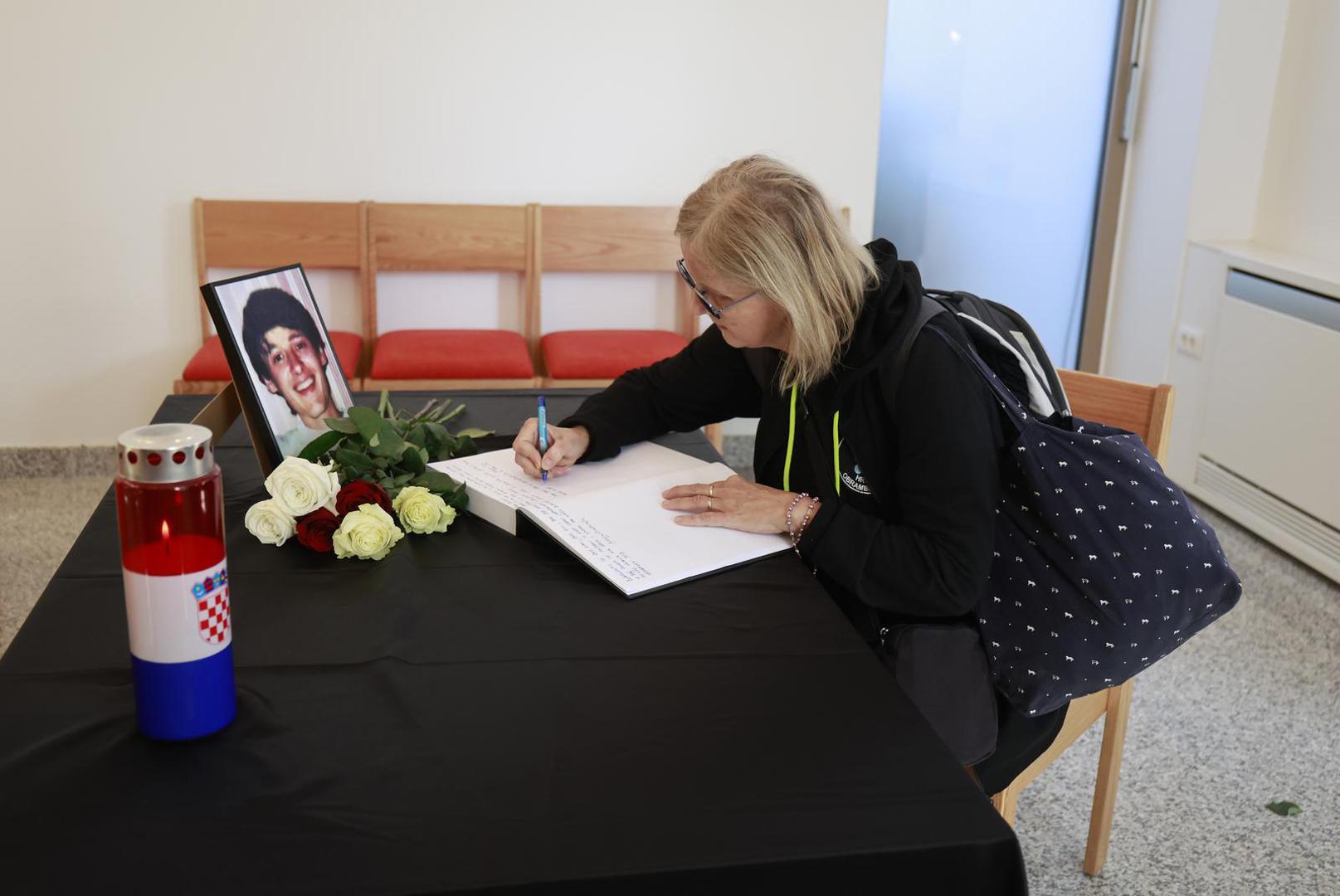 Tomo Medved je prvi upisao svoje ime u knjigu žalosti na Memorijalnom groblju žrtava Domovinskog rata, dok je majka Nicoliera, Lyliane, s bratom Paulom i rodbinom došla pred lijes i poklonila se svome sinu.