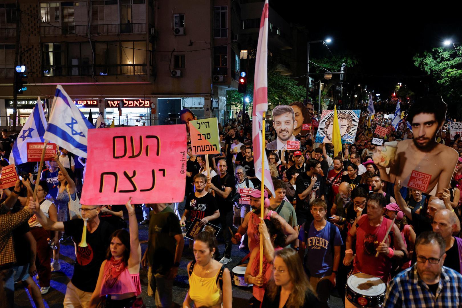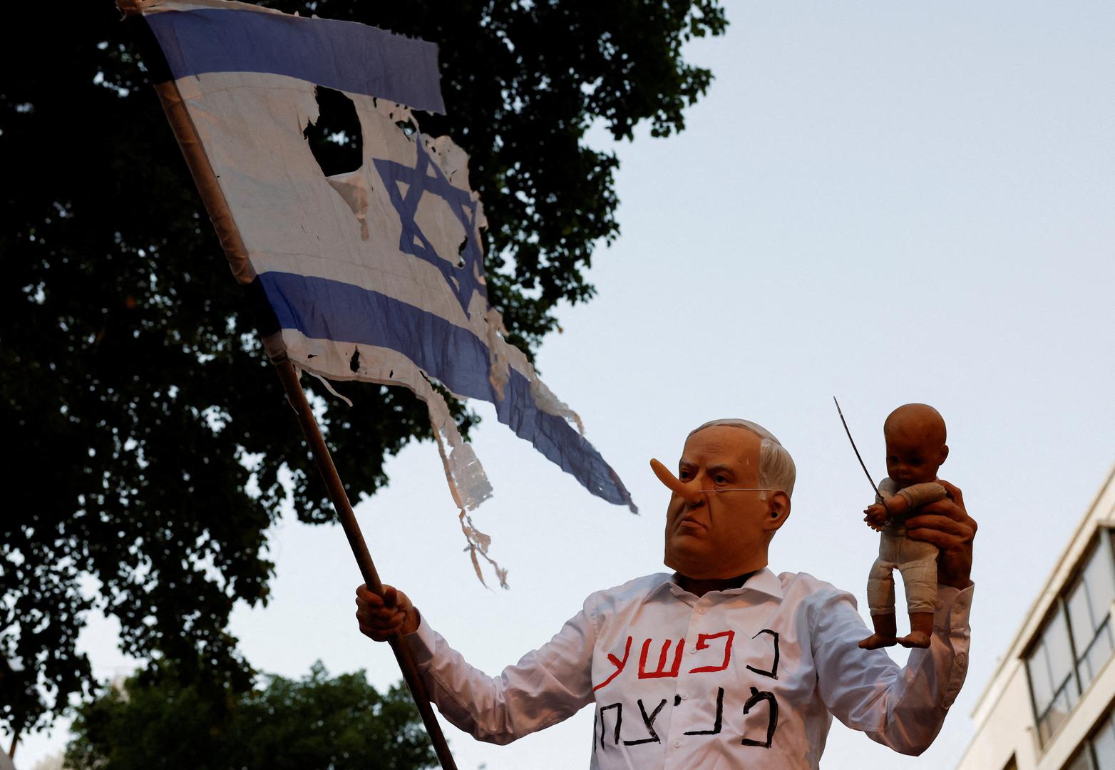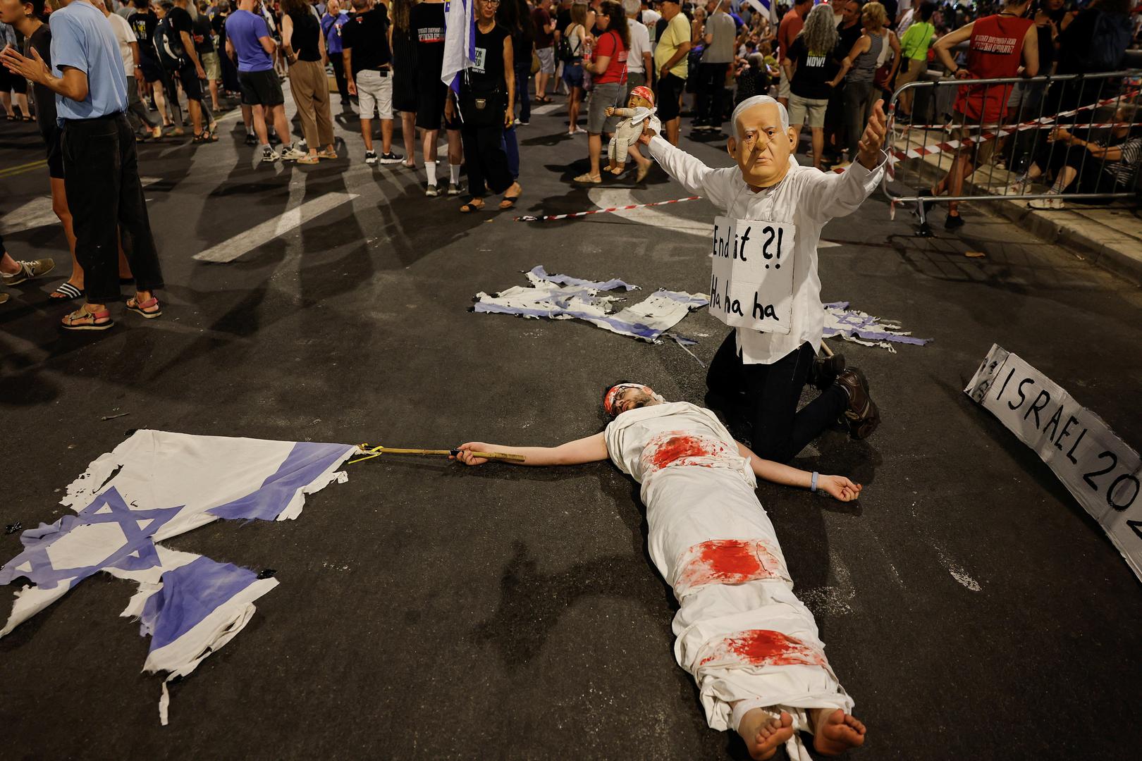 Ovi prosvjedi, koje organizatori opisuju kao najveće od početka rata, okupljaju i do 150.000 ljudi. Scene s Trga demokracije u Tel Avivu, gdje su prosvjednici ležali na tlu prekrivenom crvenom bojom kako bi simbolizirali "smrt demokracije", obišle su svijet.