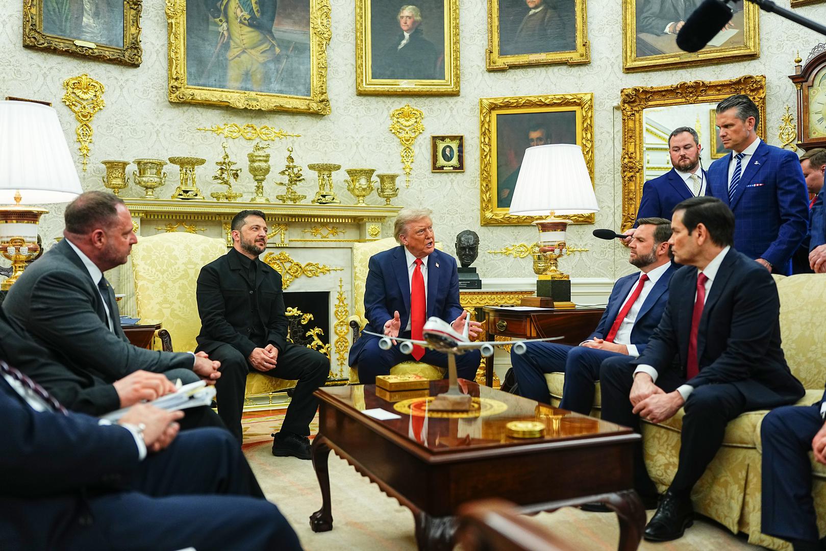 Trump je tada otvoreno tražio da Ukrajina pristane na prekid vatre s Rusijom, dok je Zelenski inzistirao na sigurnosnim jamstvima protiv buduće ruske agresije. Mediji su taj susret opisali kao neviđenu javnu konfrontaciju američkog predsjednika i stranog čelnika, a međunarodna javnost velikim je dijelom stala na stranu Zelenskoga.