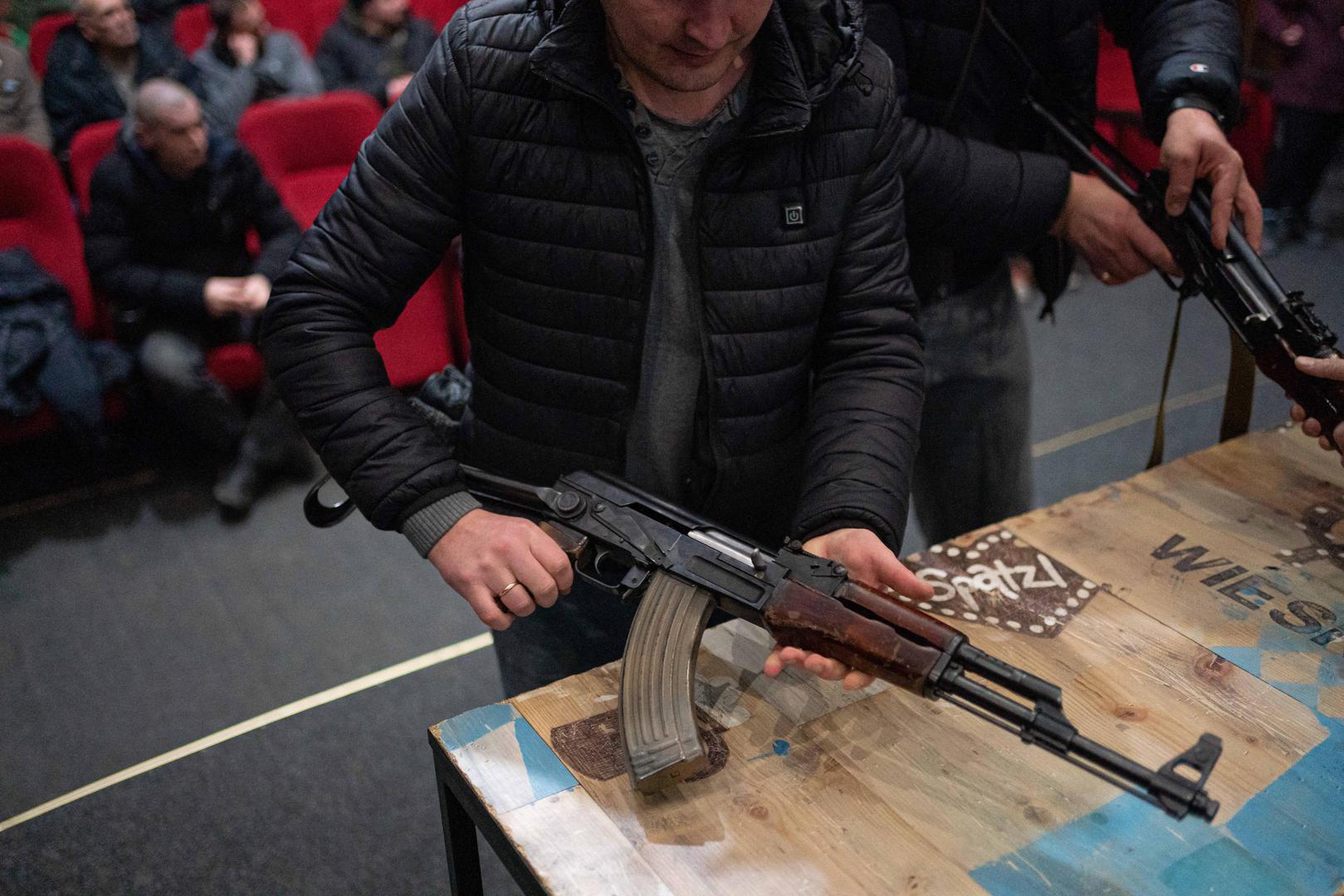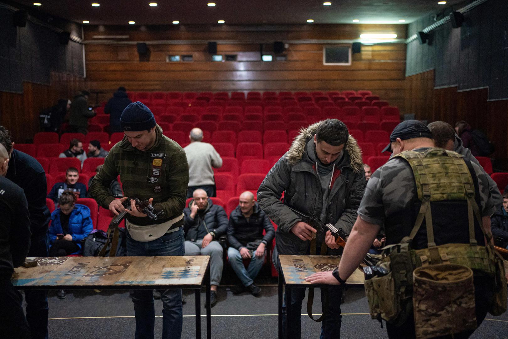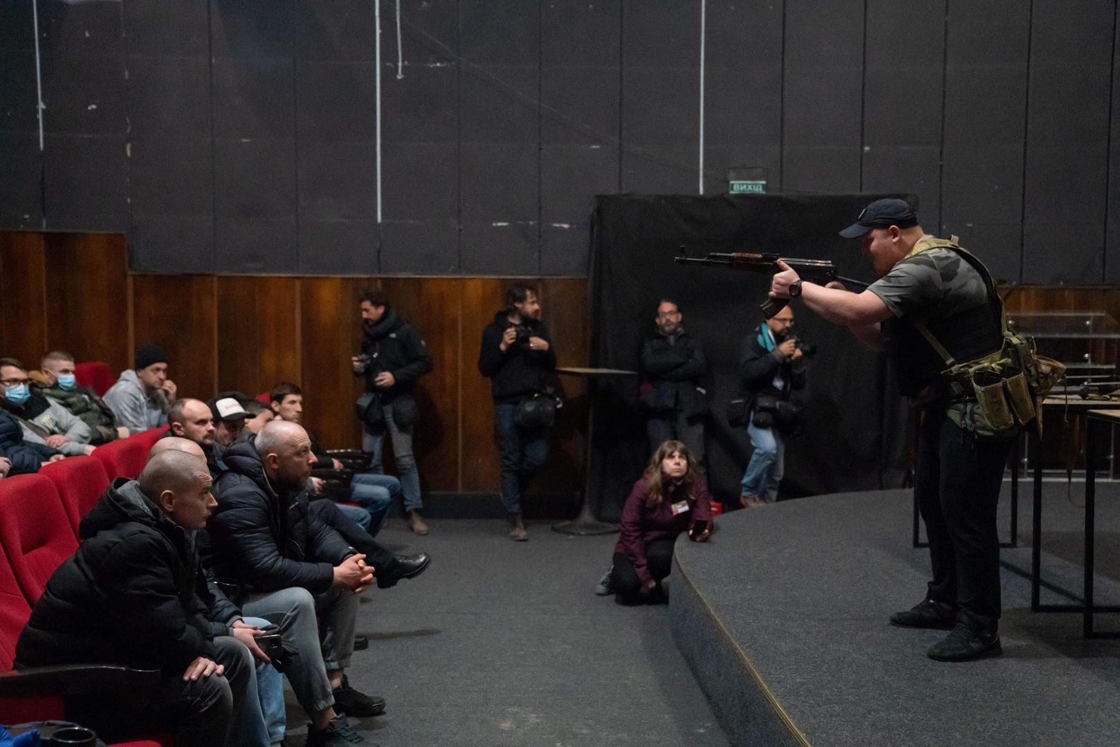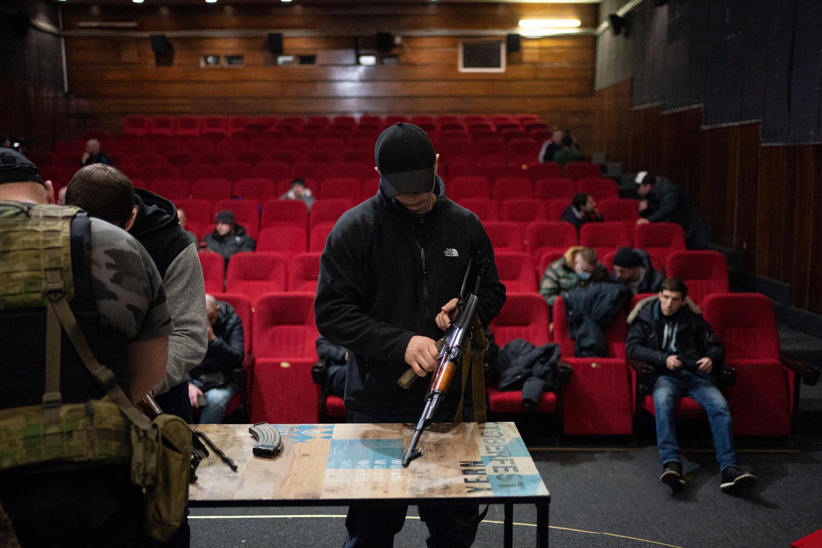 FOTO Mobilizacija u Lavovu: Civile u kino dvorani uče kako koristiti oružje