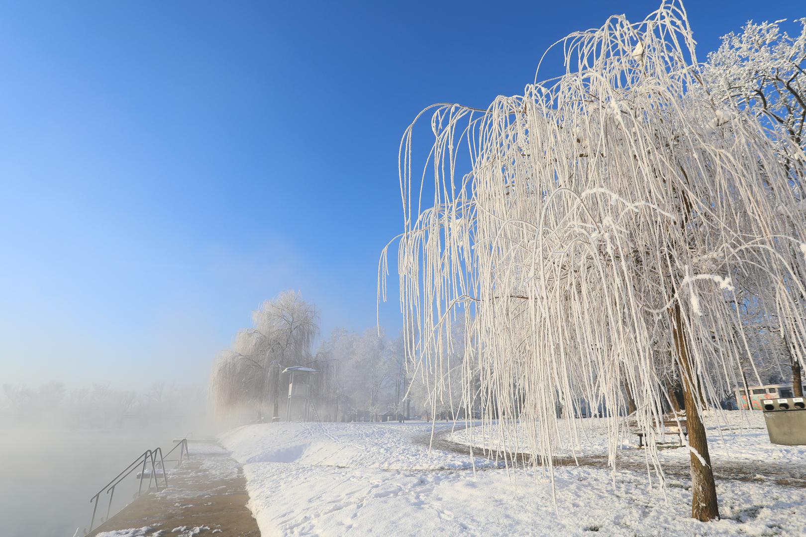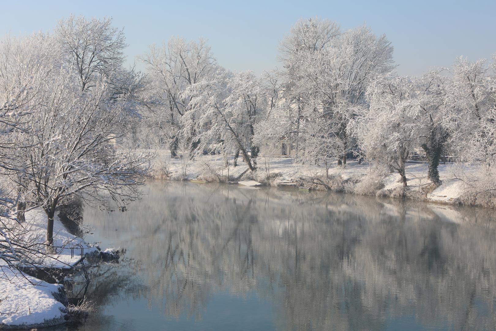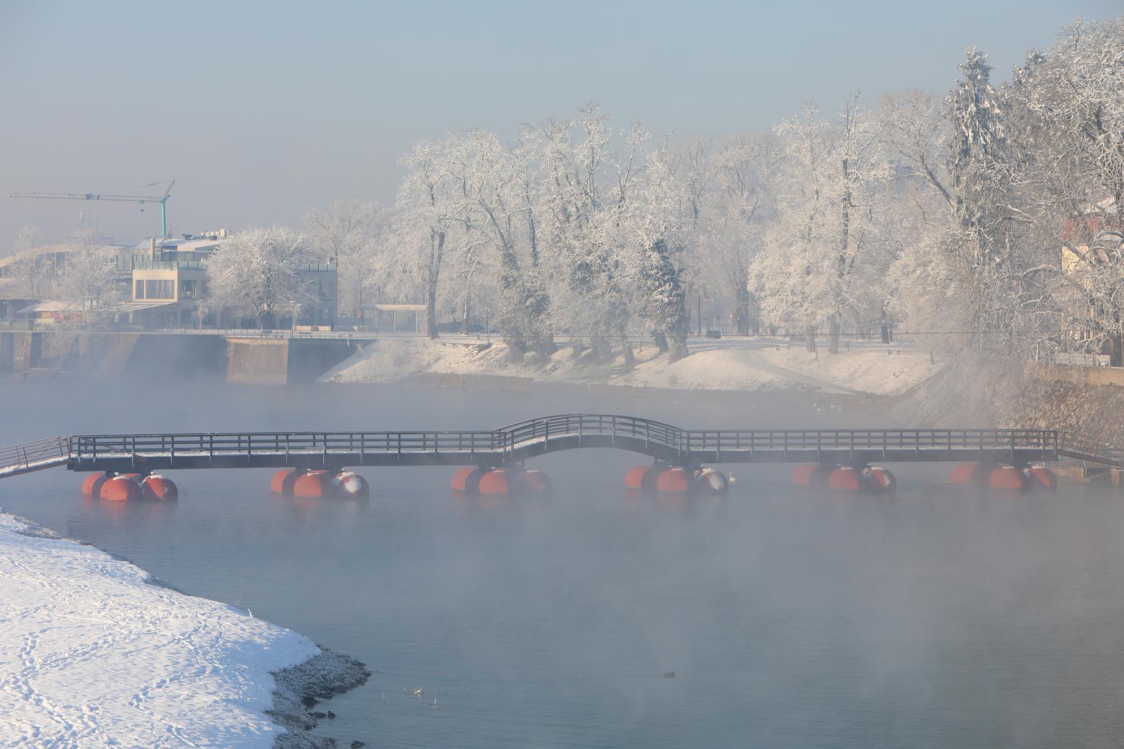 Fotografije zimske idile uz rijeku Koranu pokazuju i kako je izgledalo današnje jutro u Karlovcu.