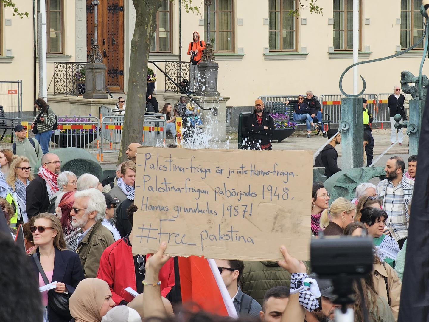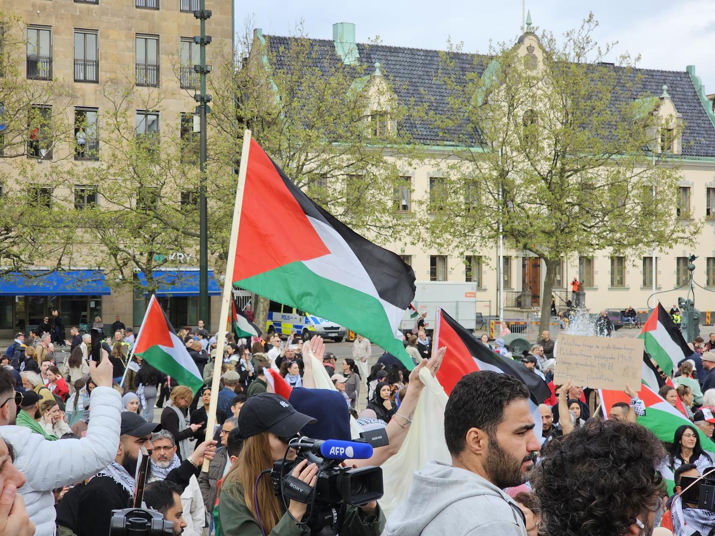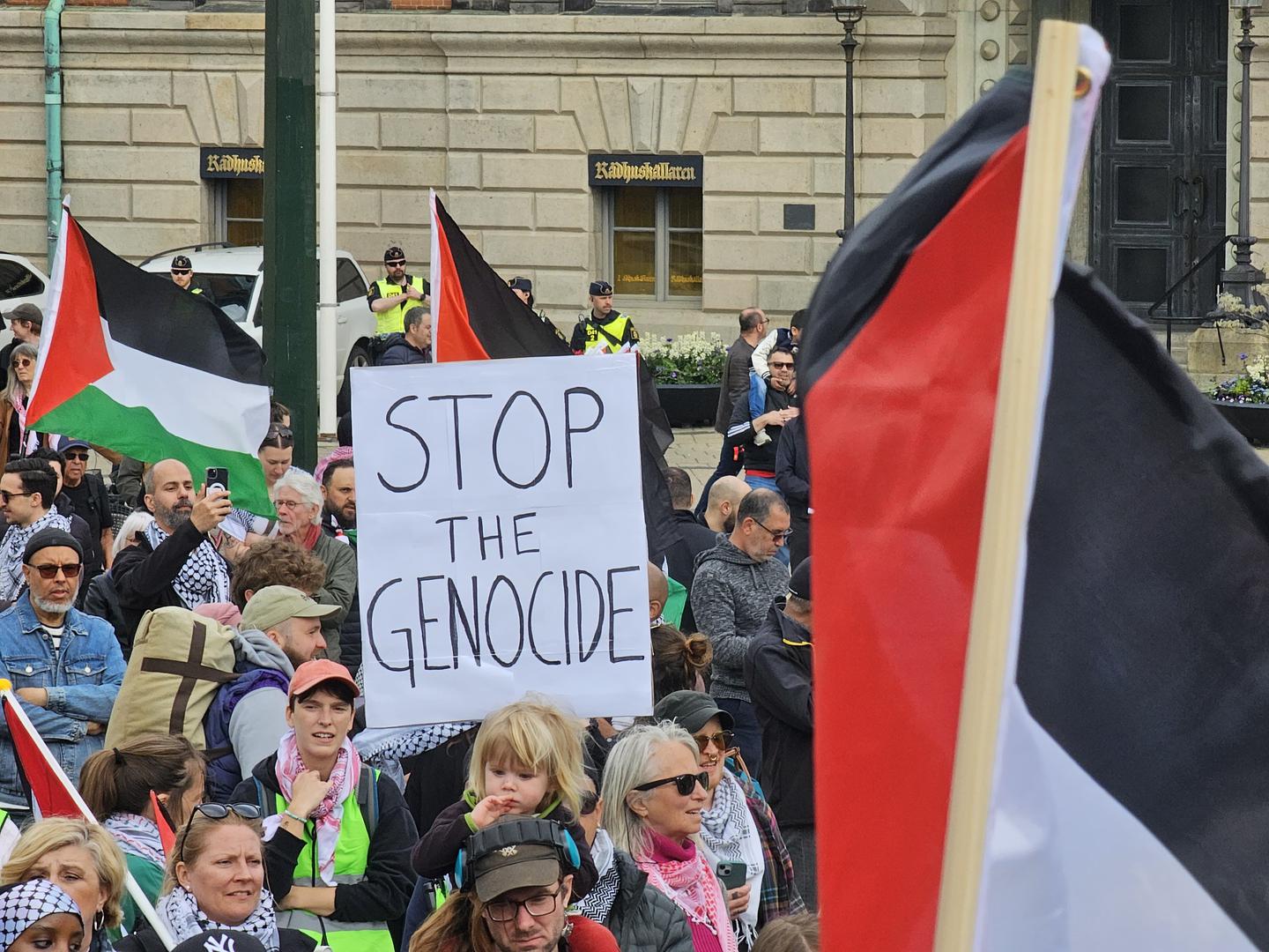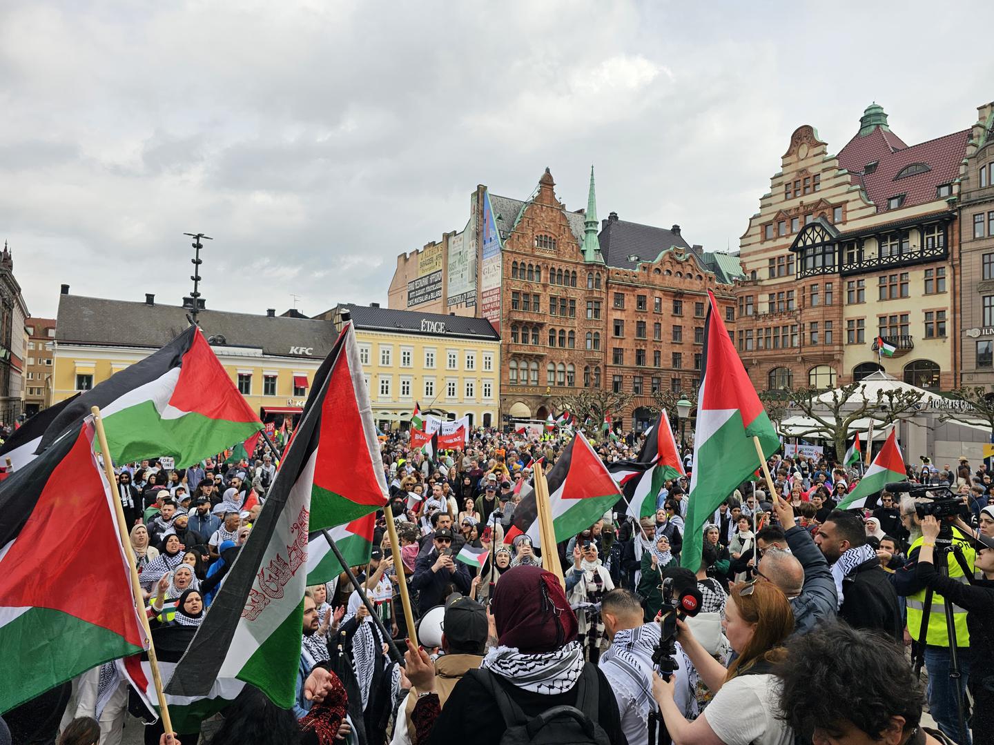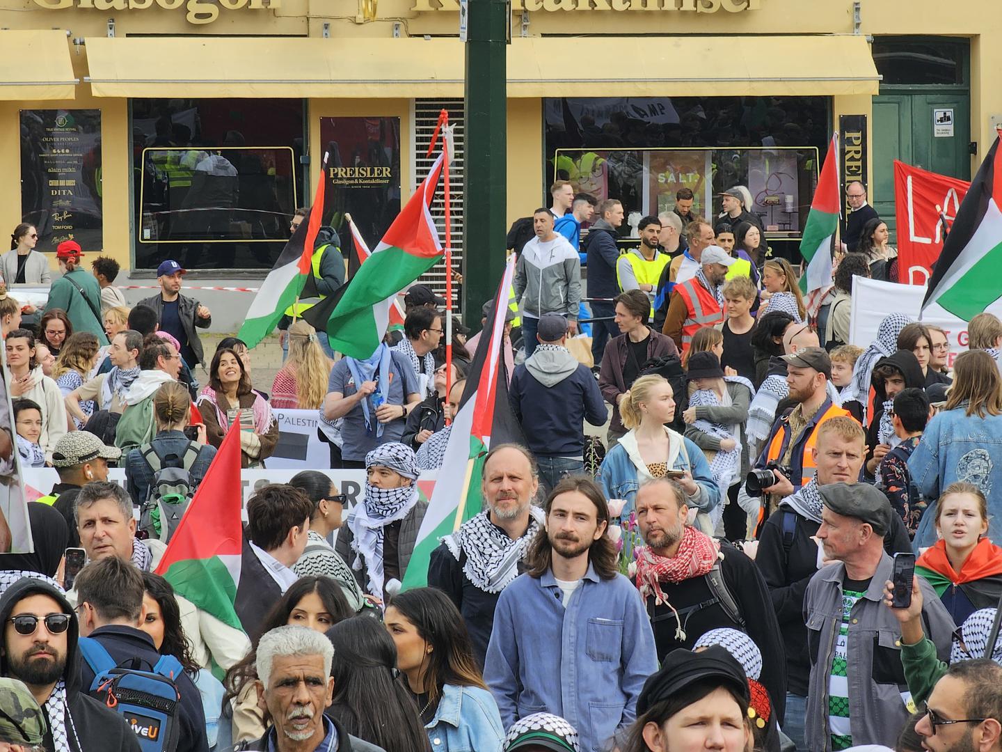 Na trgu ispred Gradske vijećnice okuplja se gomila kako bi dala podršku Palestini, pozivajući zapad i Izrael da spriječe genocid.