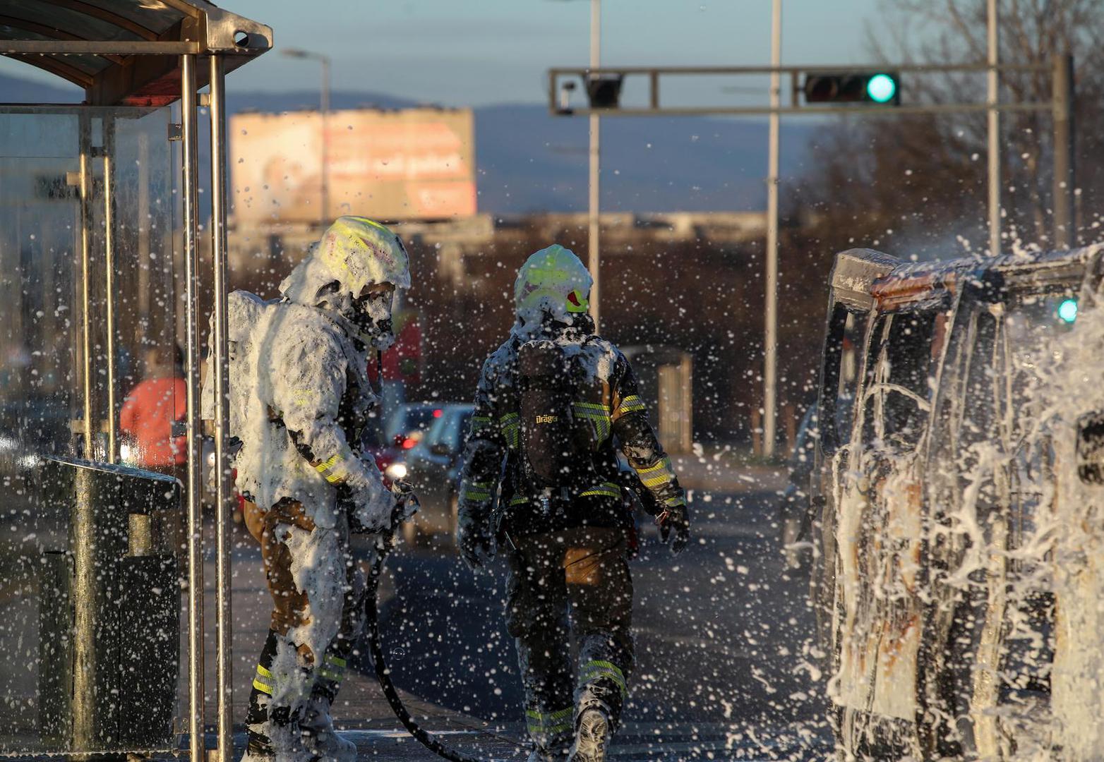 U vozilu se nalazilo osam putnika, no srećom nitko nije ozlijeđen, a požar je ubrzo ugašen.