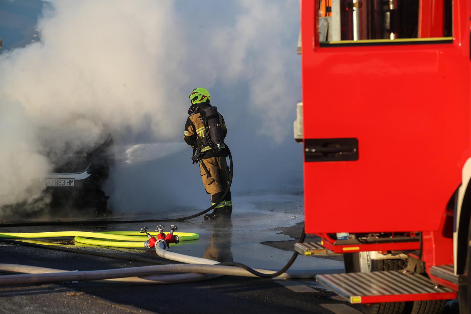 FOTO Zapalio se kombi u Novom Zagrebu, pogledajte što je ostalo od vozila. Vatrogasci su natopili cestu...
