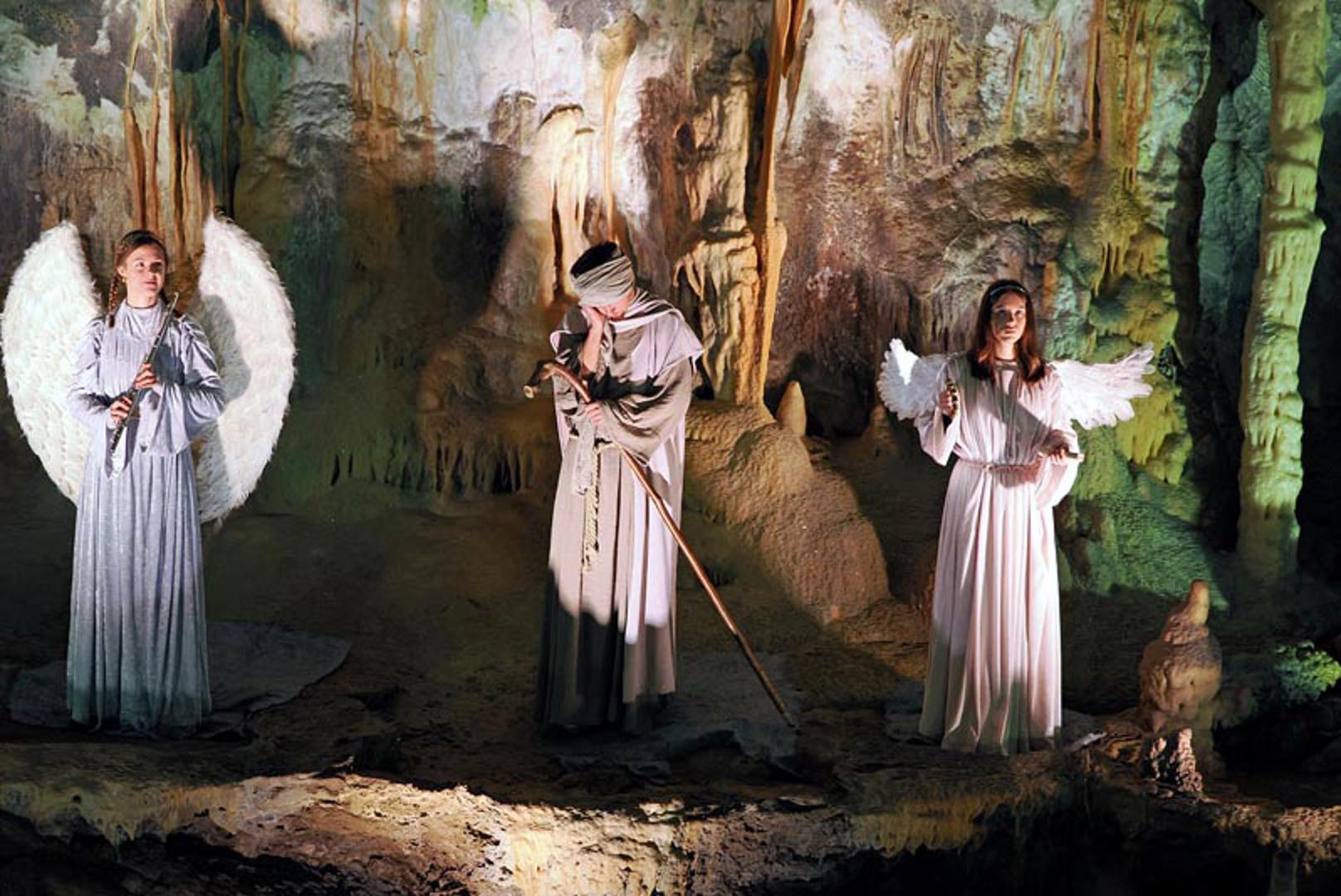 Uz to, i ovih su blagdana 35. puta za redom organizirali i blagdanski program Žive jaslice u Postojnskoj jami koji se odvija na ruti dugoj oko 5 kilometara, koja kombinira vožnju špiljskim vlakićem i šetnju (od 1,5 km) kroz spektakularne dvorane. Priča je ispričana kroz 18 biblijskih prikaza, a počinje u podnožju Velike gore u prizoru Navještenje Zahariji s pjevačkim nastupom talijanskog opernog pjevača Ivana Defabianija s pjesmom The Lords Prayer. Na Velikoj gori Anđeo Gabrijel najavljuje Djevici Mariji da će roditi sina Božjeg, a mlada hrvatska sopranistica Leonarda Kavedžić pjeva Ave Mariju. Ova talentirana sopranistica studentica je magistarskog studija solo pjevanja na Glazbenoj akademiji u Ljubljani i ovo joj je prvi nastup u Postojnskoj jami.