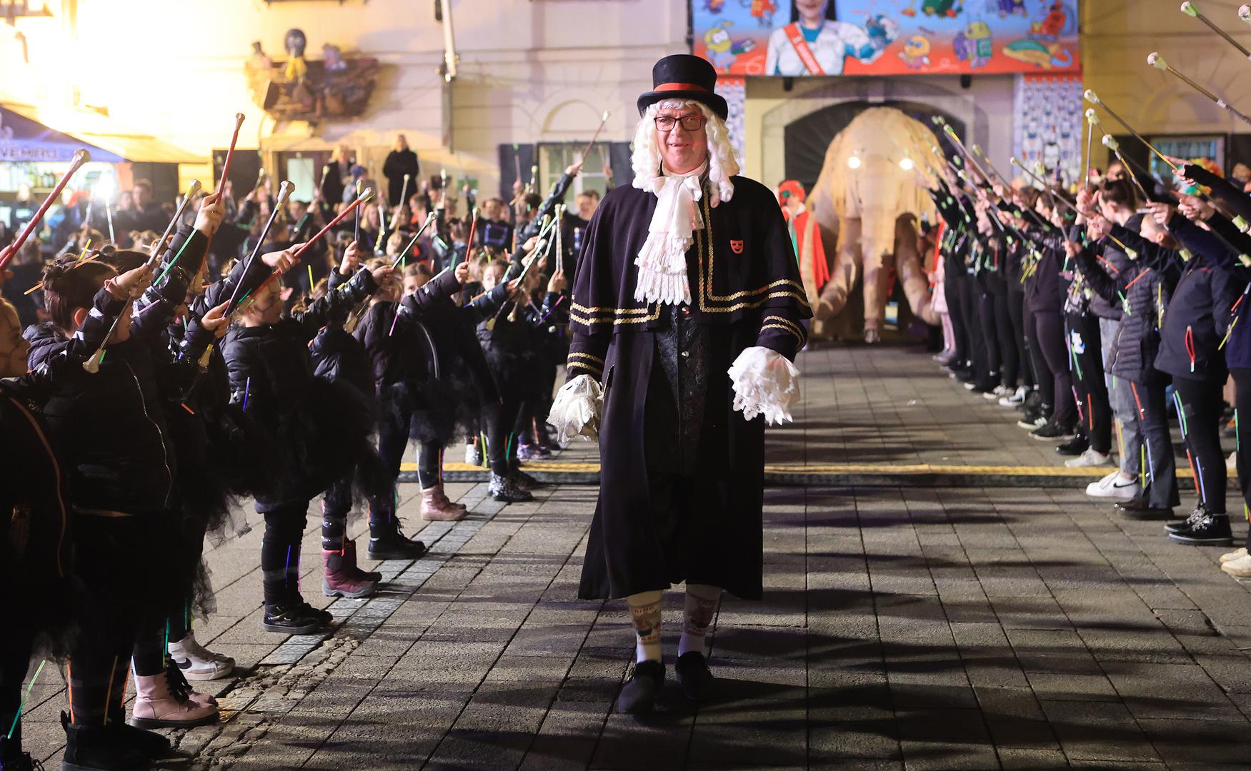 Fašnički spektakl započeo je 2. veljače kada je gradonačelnica Petra Škrobot predala ključeve grada i proglašena je Slobodna Fašnička Republika, a vlast su preuzeli Sraka, Fiškal, Sudec i Princ.