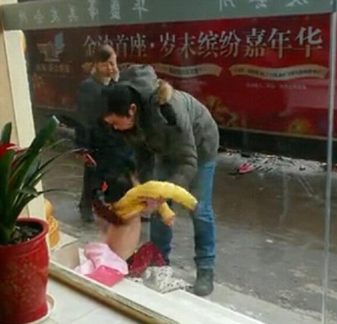 Uznemirujuće fotografije snimili su, pretpostavlja se, ljudi koji su sve gledali iz obližnjeg poslovnog prostora. Kineski Shanghaiist izvijestio je da se incident dogodio nakon što je otac izgubio strpljenje jer je djevojčica satima odbijala nositi jaknu. Nakon toga joj je skinuo i jaknu i majicu pa je ostala polugola na hladnoći.