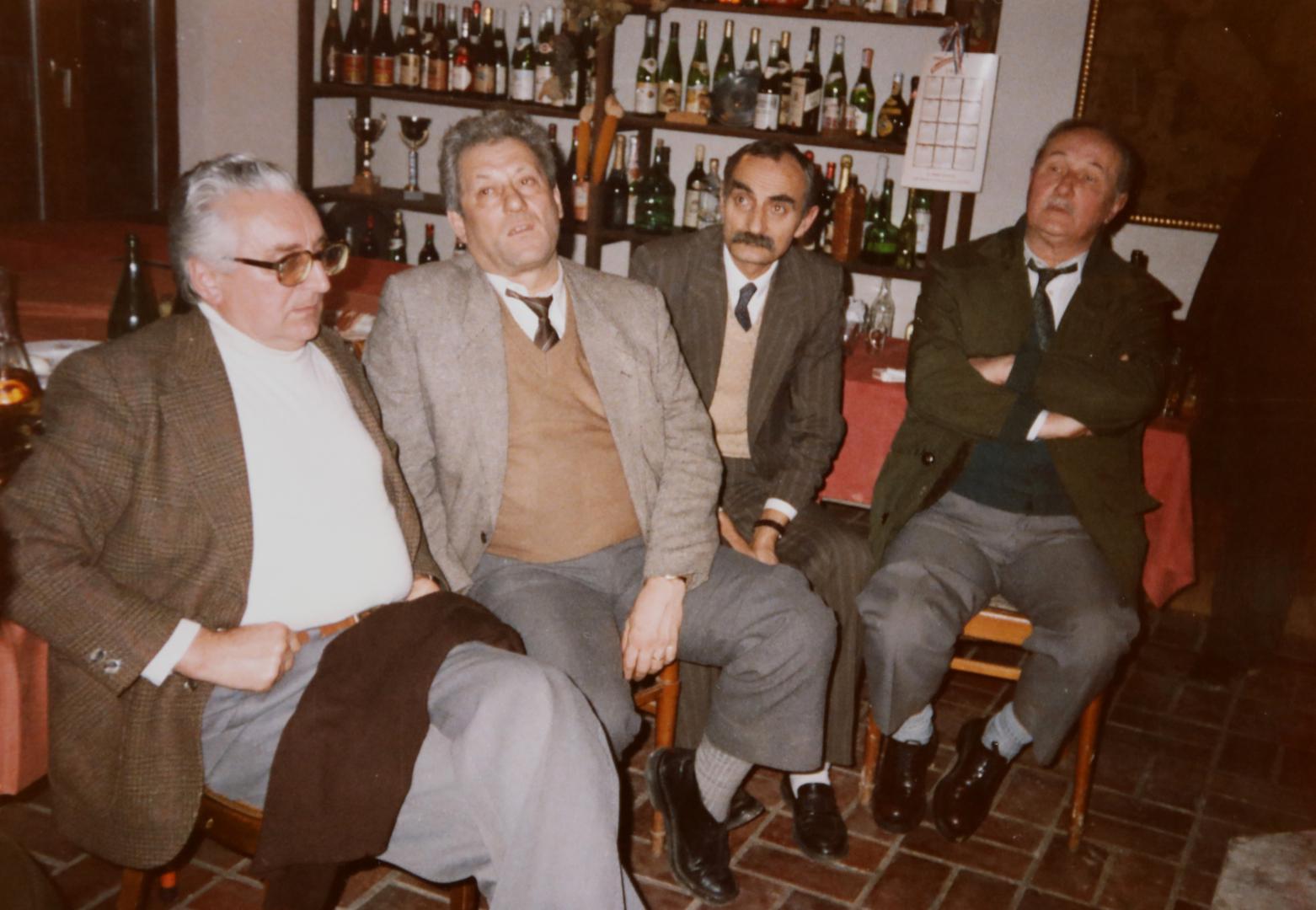 Deseta obljetnica sastanka: Mladen Marić, Nikola Gagulić, Marko Turić, Vlado Marić, Tomislav Ladan, Hrvoje Šošić, Ante Ledić, Marko Veselica, Vlado Jurčević, Vladimir Veselica; čuče: Ivo Maglica i Anto Matković