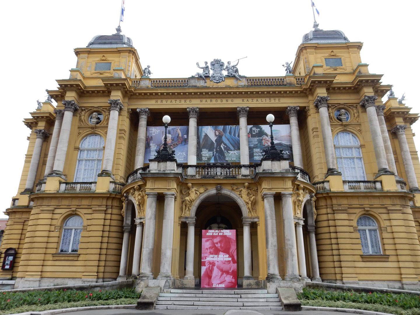 Rad 'Zagrljaj fašizma dugo nije bio čvršći' Olivera Frljića (p)ostavljen je na ulazu u HNK u Zagrebu.