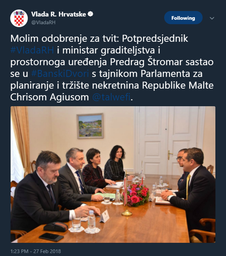 — Vlada R. Hrvatske (@VladaRH) 27. veljače 2018.