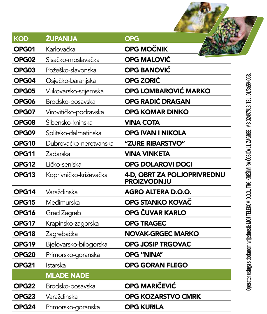 U izboru za najbolji OPG svaku županiju i Grad Zagreb predstavlja po jedan OPG, a nagrade se dijele za prva tri mjesta prema izboru žirija, najbolji OPG prema izboru čitatelja te za najbolju mlada nadu u poljoprivredi. Tko su pobjednici, bit će poznato na svečanoj završnici koja se treba održati 12. rujna u dvorcu Jurjevec kod Lekenika.