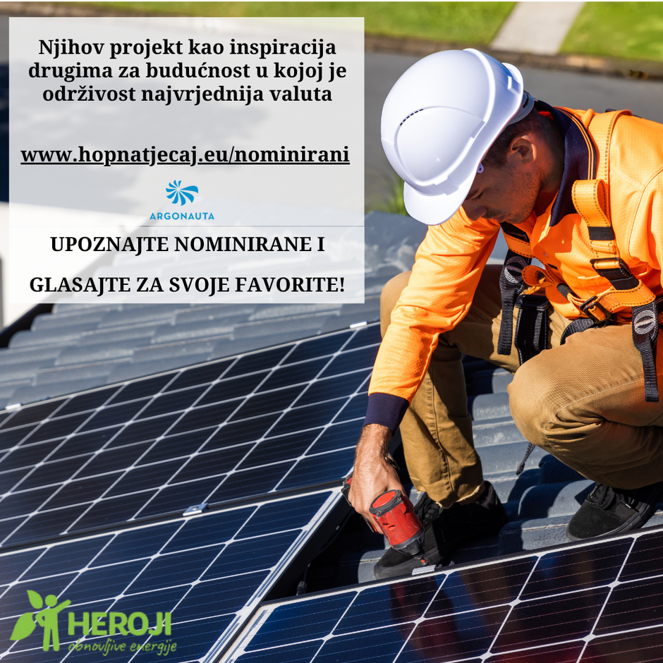 Udruga Argonauta s ponosom objavljuje da je otvoreno javno glasanje za nominirane u sklopu natječaja Heroji obnovljive energije, koji promovira dobre primjere korištenja obnovljivih izvora energije i održivih rješenja u Hrvatskoj. Nakon završenog javnog poziva i selekcije, 28 nominiranih projekata i inicijativa sada su dostupni javnosti na stranici: https://hopnatjecaj.eu/nominirani/