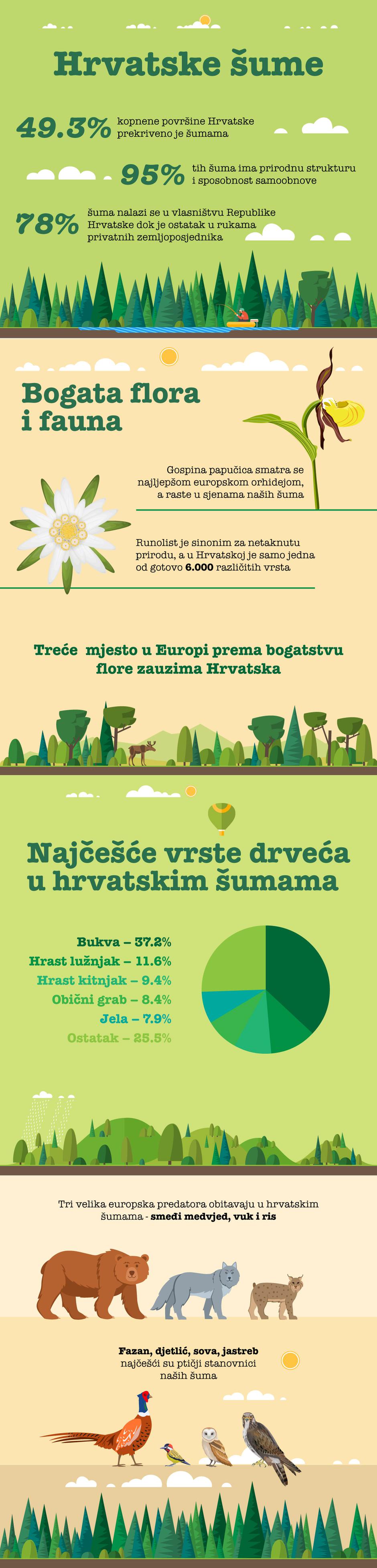 Hrvatska je zemlja koja posjeduje pravo šumsko bogatstvo. Važnost šuma nikako se ne može osporiti jer upravo su one zaslužne za proizvodnju kisika, pročišćavanje zraka pa i filtriranje vode. Usto, one sprječavaju eroziju tla te su ljudima saveznice u proizvodnji hrane.