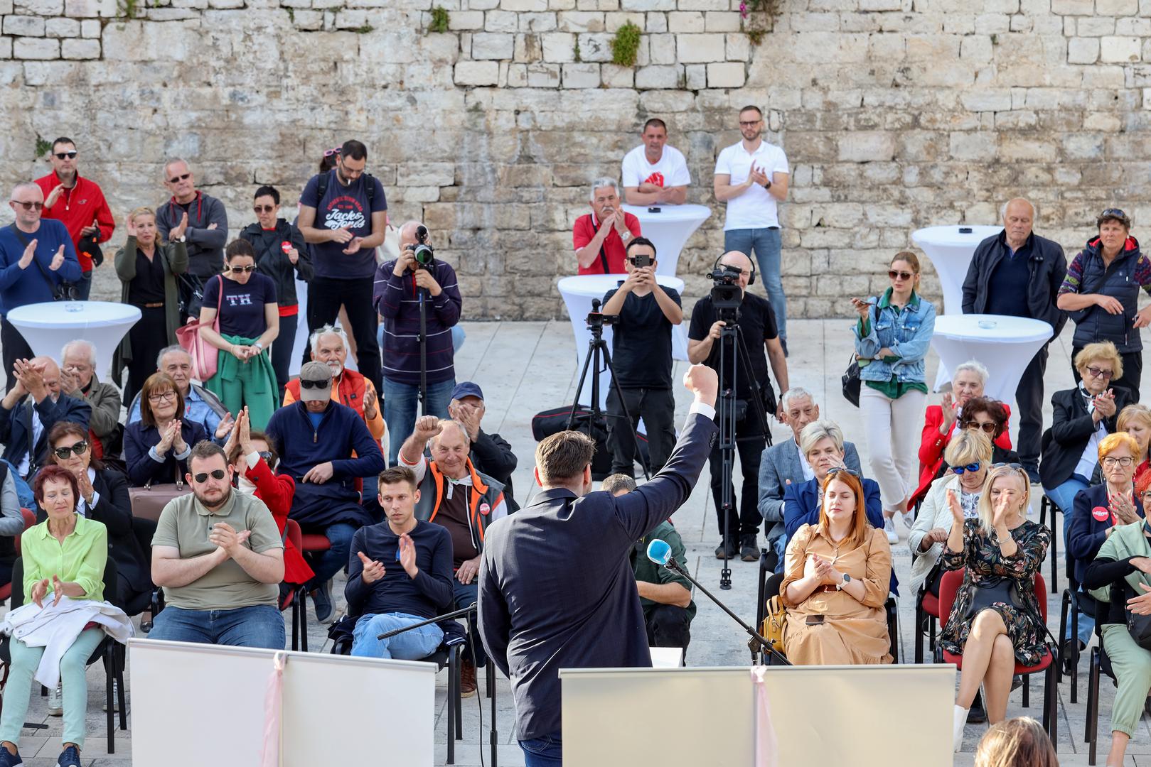 Poručio je da će svaki dan mandata brinuti o svim "našim ljudima". "Vratit ćemo sve ono što su Plenković i njegova vlada u posljednjih osam godina hrvatskim ljudima oduzeli. Znamo kako, možemo to i hoćemo! Ali jedino i isključivo uz vašu pomoć. Izbor je jednostavan, ili HDZ-ova korupcija, kleptomanija, krađa i nesposobnost ili Rijeke pravde koje će Hrvatsku učiniti boljom. Treće opcije nema, zaključio je predsjednik SDP-a.