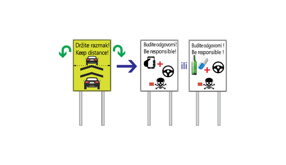 U Hrvatskim autocestama (HAC) su pak, kako bi vozače upozorili na poštivanje sigurnosnog razmaka i pomogli im u tome, izradili pilot-projekt prometne signalizacije koja će im pomoći u vizualizaciji spomenute dvije sekunde, koje pri brzini od 130 km/h znače razmak između vozila od 70 metara.
