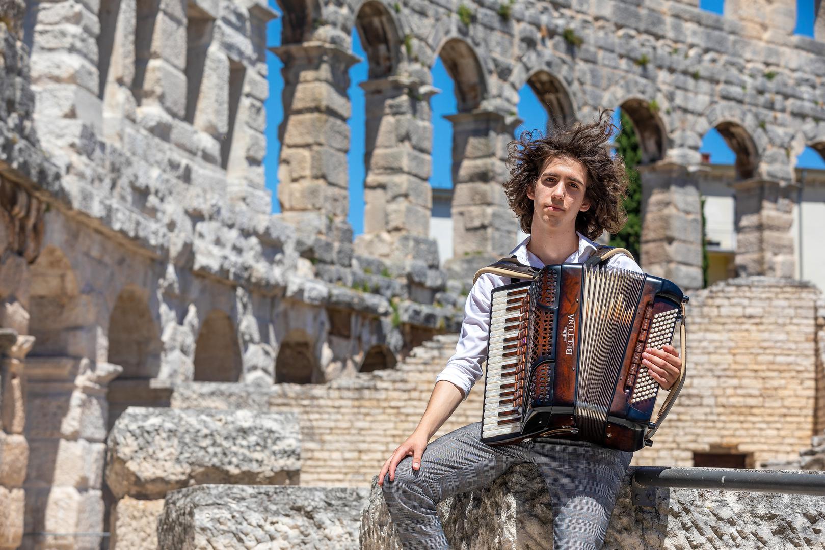 Ovaj nasmijani 18-ogodišnjak iz Istre konkurirao je za jednogodišnju stipendiju Germanije kako bi uz njihovu pomoć nastavio niz svojih uspjeha. Prošle godine je osvojio prvu nagradu na 58. HDGPP natjecanju, zlato na Manhattan International Music Competition i zlato u kategoriji ansambla na British College of Accordionists Competition 2020.