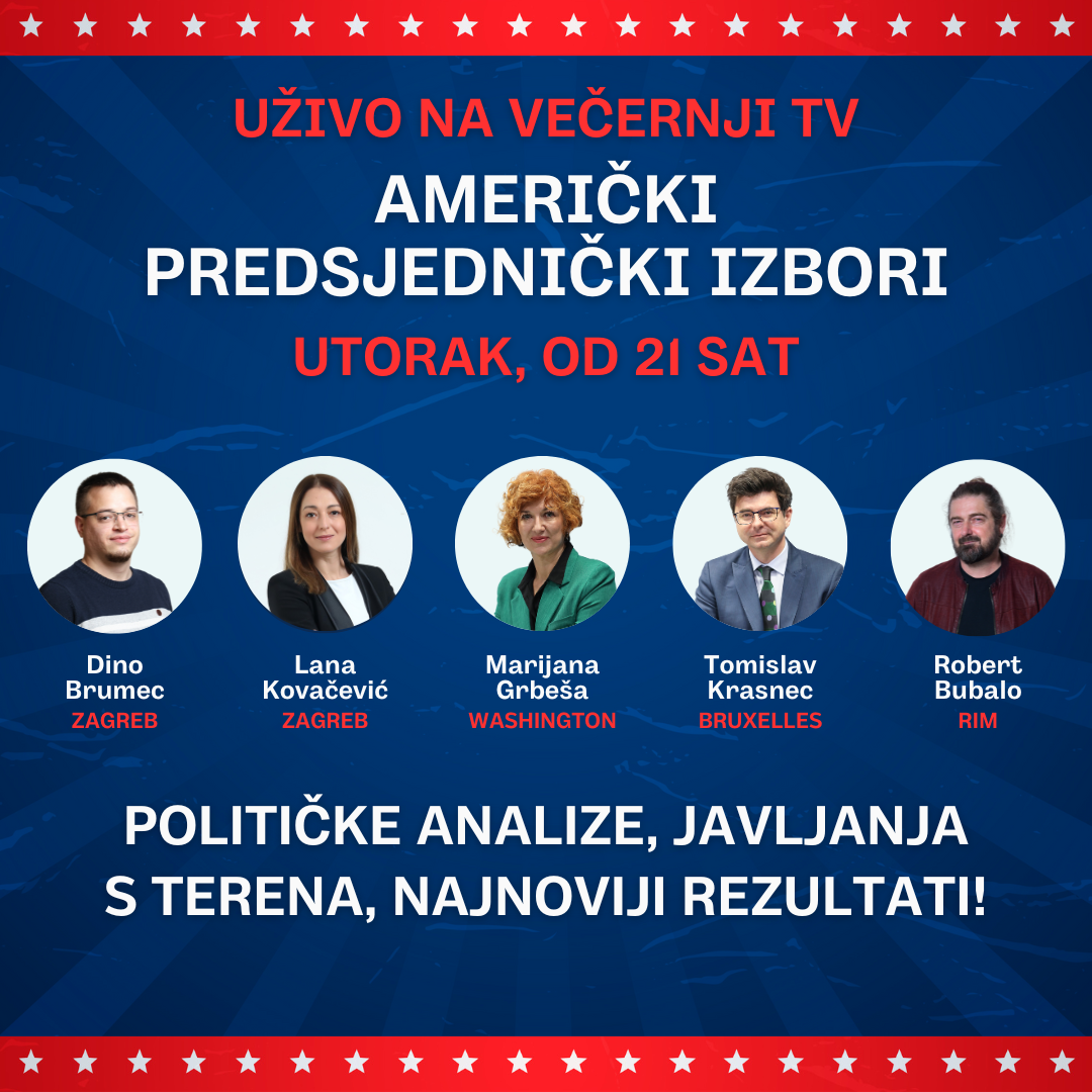* rezultati će utjecati na svjetsku geopolitičku scenu. Kada bi se mogli znati konačni rezultati u kojoj saveznoj državi te što se događa u Americi i kakva atmosfera vlada među Amerikancima i Europljanima, pratite uživo na Večernji TV-u od 21 sat.