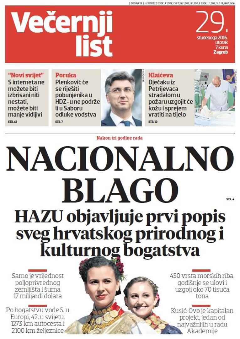 Hrvatska prvi put na jednom mjestu ima popis svih prirodnih bogatstava zemlje, dosad nedovoljno iskorištenih u razvoju države. Riječ je o sveobuhvatnoj “inventuri” nacionalnog blaga s prijedlozima za zaštitu hrvatskih prirodnih bogatstava, ali i njihovo racionalno iskorištavanje, navedenima u knjizi “Hrvatska prirodna bogatstva – zaštita i odgovorni razvoj”, koja će biti predstavljena u srijedu u Hrvatskoj akademiji znanosti i umjetnosti.