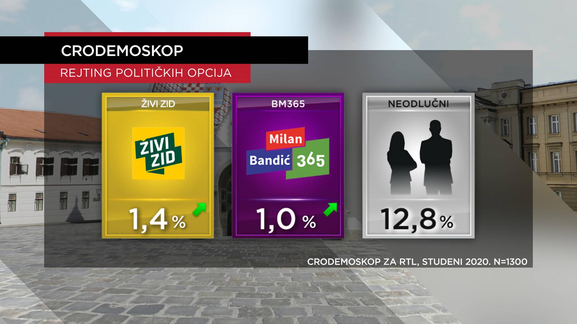 Istu, nisku podršku ima i Živi zid (1,4 posto), još niži je rejting stranke zagrebačkog gradonačelnika Milana Bandića (1 posto), a postoji i veliki bazen neodlučnih birača: gotovo 13 posto.