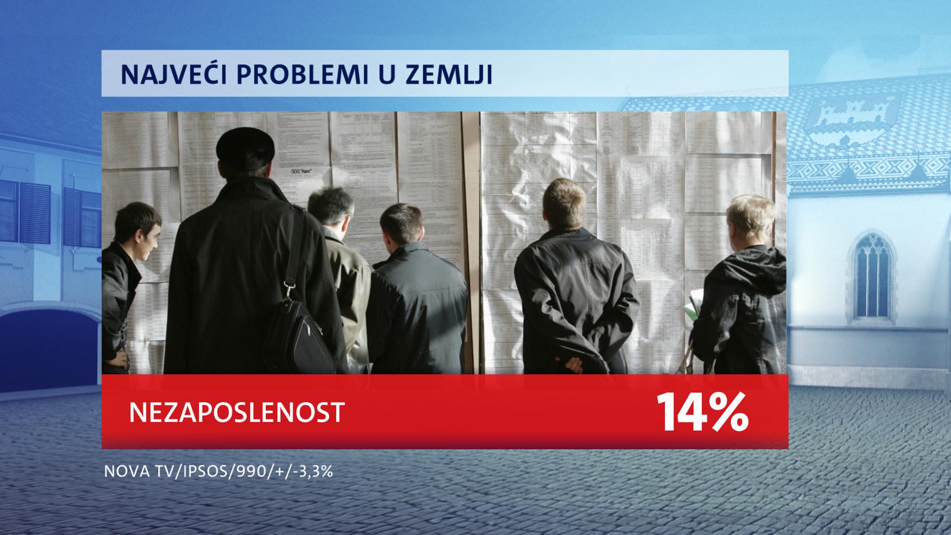 Kada se građane pita koji su najveći problemi u zemlji, na prvom mjestu je recesija. To brine 19 posto ispitanika. Nezaposlenost brine 14 posto građana. Korupcija na visokoj razni problem je za 13 posto ispitanika, a inflacija za njih 11 posto, životni standard i plaće problem su za 11 posto ispitanika.