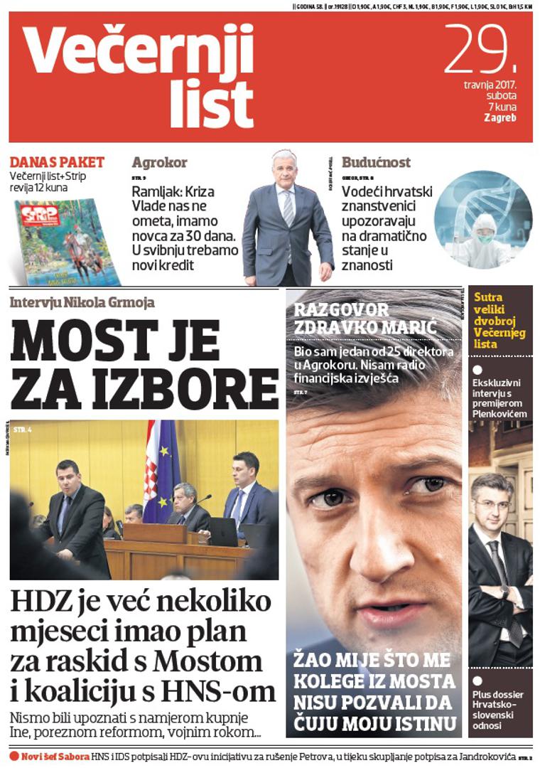 Nismo, prošli petak razgovarao sam s predstojnikom ureda premijera Božinovićem i rekao mu da Most ne može pristati da Marić ostane ministar financija jer nema čovjeka koji vjeruje u to da on nije znao što se događa u Agrokoru. Tada se spominjala i mogućnost rekonstrukcije Vlade, kao i ostavka ministra Marića, i meni su ta dva scenarija bila najizglednija, međutim, premijer Plenković je u zadnji tren na dnevni red sjednice uvrstio mišljenje Vlade o Marićevu opozivu pa našim ministrima nije preostalo ništa drugo nego da budu istog stava kakvog će Most biti u Saboru. Nadao sam se da će Marić dati ostavku kako bi Vlada mogla nastaviti s radom jer je svima bilo jasno da on ne može donositi nijednu odluku vezanu uz krizu u Agrokoru.