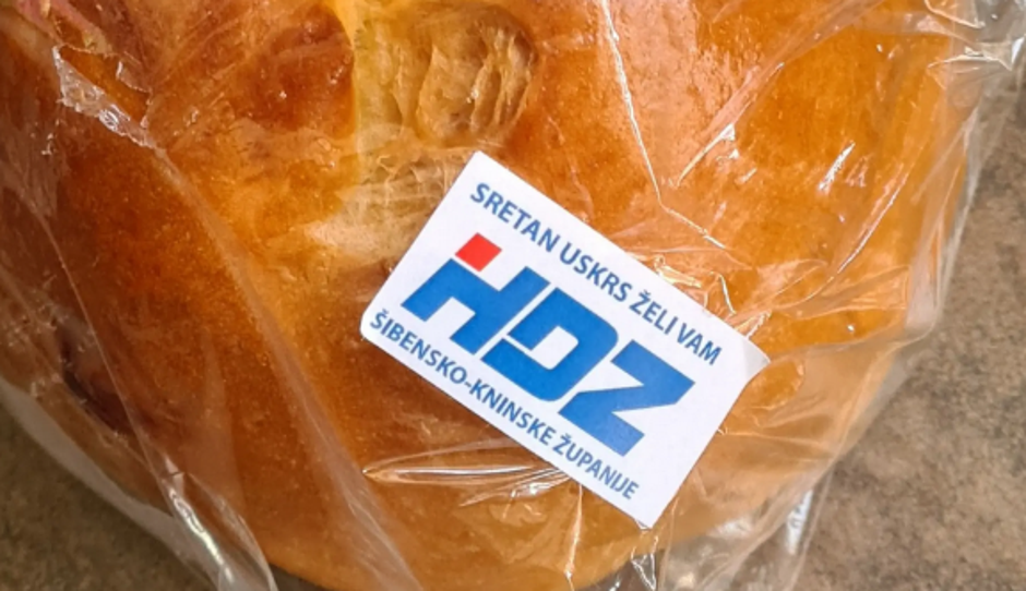 Darivane pogače kupljene su u pekari, zamotane u vrećice bez deklaracije s velikom naljepnicom u bojama HDZ-a, a ravnateljice javnih vrtića, obje HDZ-ovke, takve su ih prihvatile, iako je to zakonom zabranjeno.
