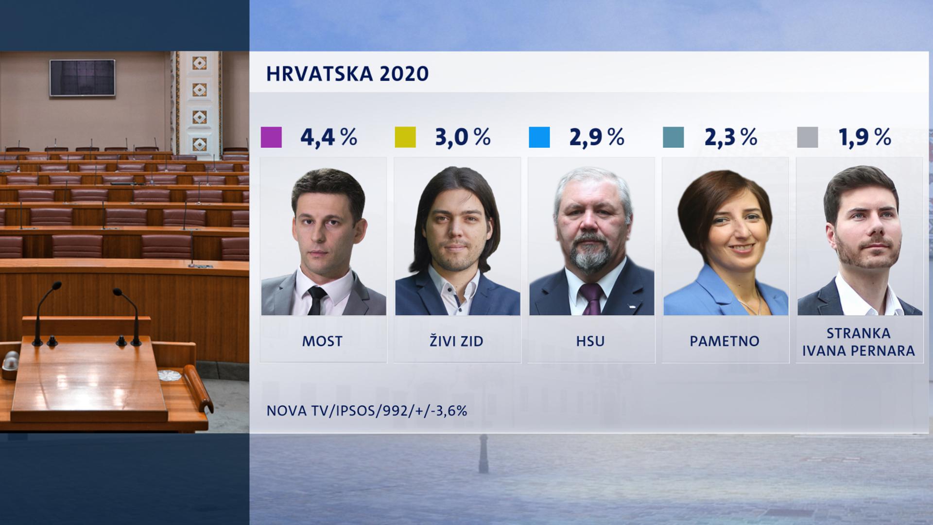 Najjača stranka ponovno je HDZ. Da su danas izbori, prema najnovijem Crobarometru koji je za Novu TV izradila agencija Ipsos vladajući HDZ imao 25,2 posto potpore, dok je SDP koji je zadnjih nekoliko mjeseci bio prva stranka sada na 23,7 posto potpore. Još samo jedna stranka prelazi izborni prag i to Domovinski pokret Miroslava Škore koji bilježi rast  i ima potporu od 12,5 posto.