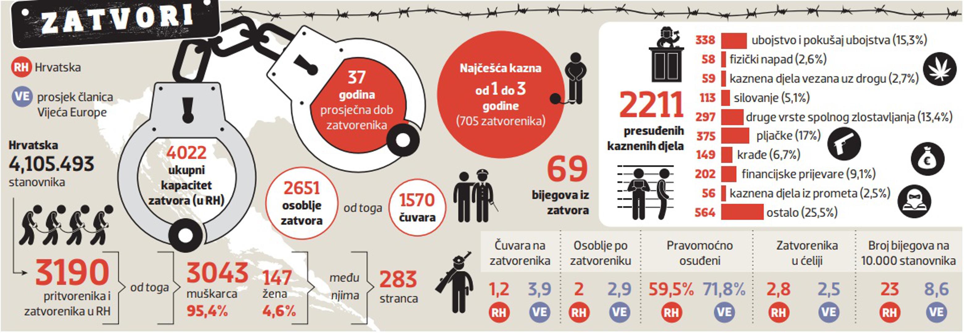 Ovaj slučaj iz 2017. – koji nalikuje filmskom scenariju – ilustrira dva od tri najvažnija problema hrvatskog zatvorskog sustava u najnovijem izvješću Vijeća Europe. Prema analizi podataka o zatvorskim sustavima u 47 država članica te paneuropske organizacije – među kojima su i BiH, Srbija, Crna Gora, Rusija, Ukrajina, Moldavija... – u Hrvatskoj su apostrofirana tri područja po kojima se nalazi iznad prosjeka: bijeg iz zatvora, manjak osoblja i pravosudne policije te postotak zatvorenika koji su pritvoreni bez pravomoćne presude.