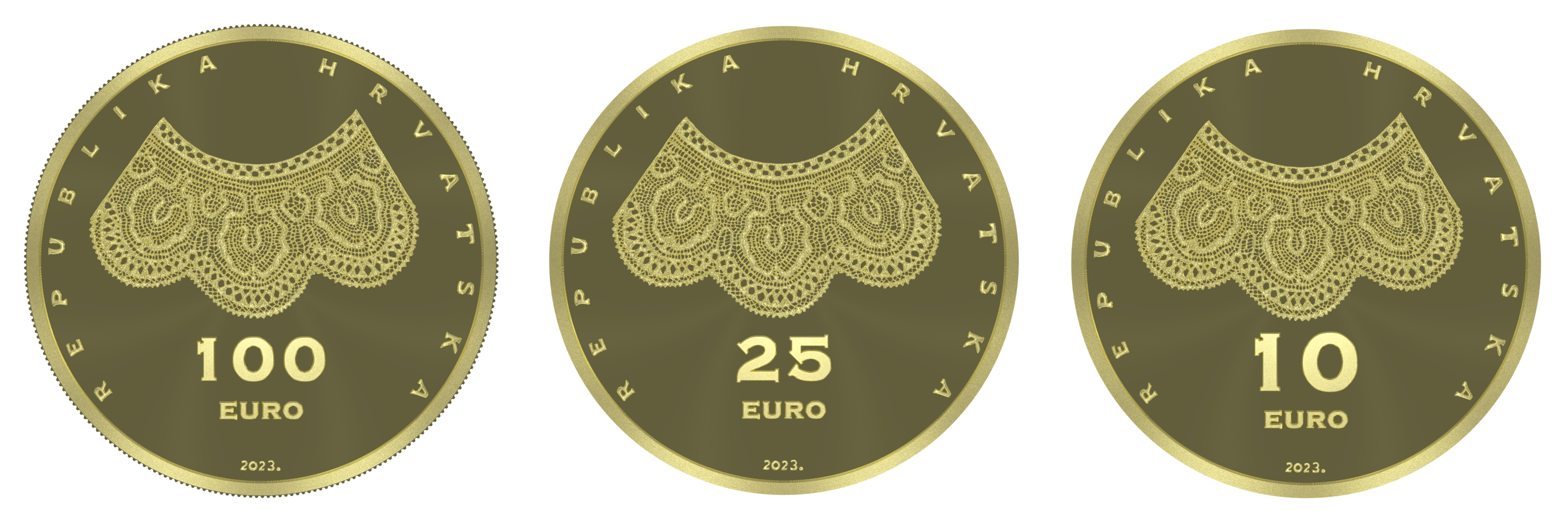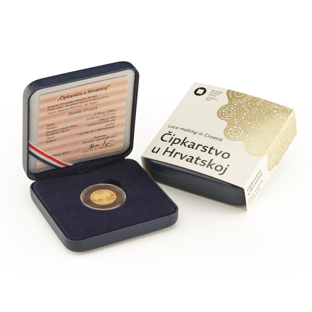 Nastavljajući s odavanjem počasti znamenitim hrvatskim tradicijama, inovacijama i ličnostima, Hrvatska kovnica novca izdala je zlatnike koje slave domaću baštinu. Riječ je o novom likovnom rješenju izdanja zlatnika „Čipkarstvo u Hrvatskoj“ od sada i u euro nominalnoj vrijednosti. Zlatnici se pojavljuju u tri nominalne vrijednosti: